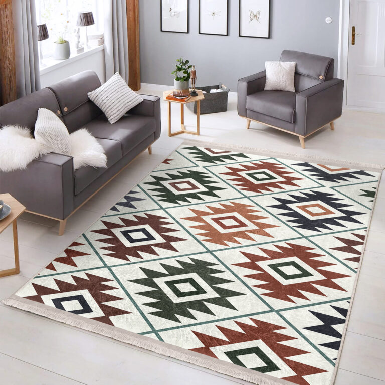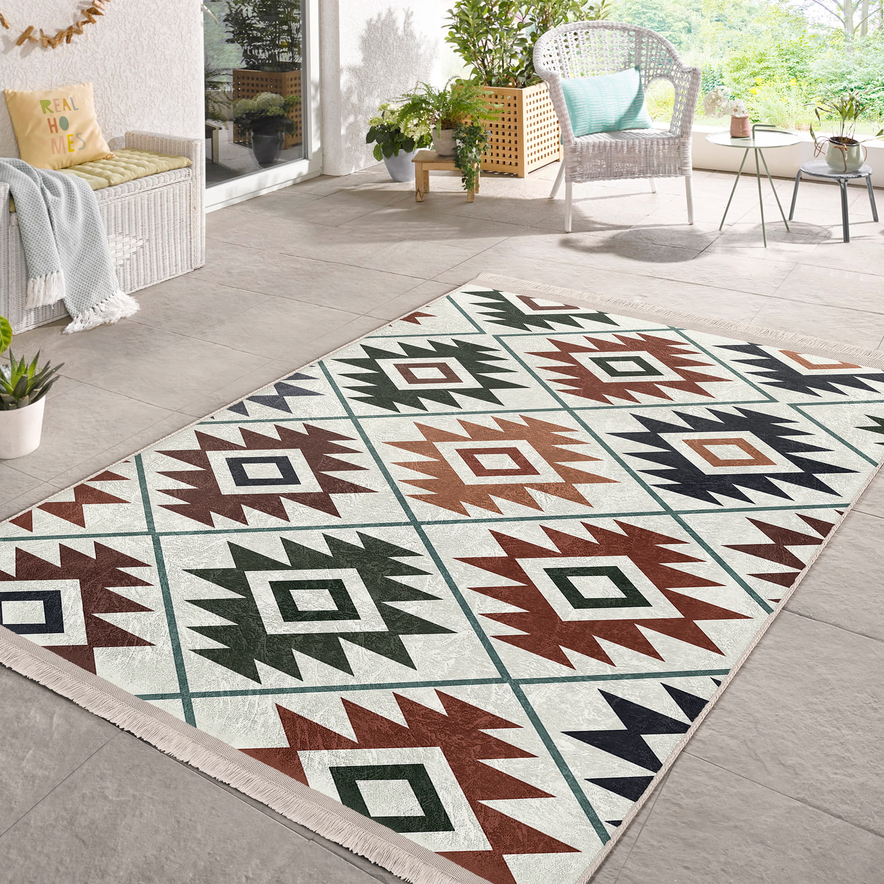 Geometrik Zeminde Otantik Motifli Geleneksel Desenli Geometrik Etnik Motifler Koridor & Antre Salon & Oturma Odası Dijital Baskılı Makinede Yıkanabilir Kaymaz Taban Saçaklı Halı
