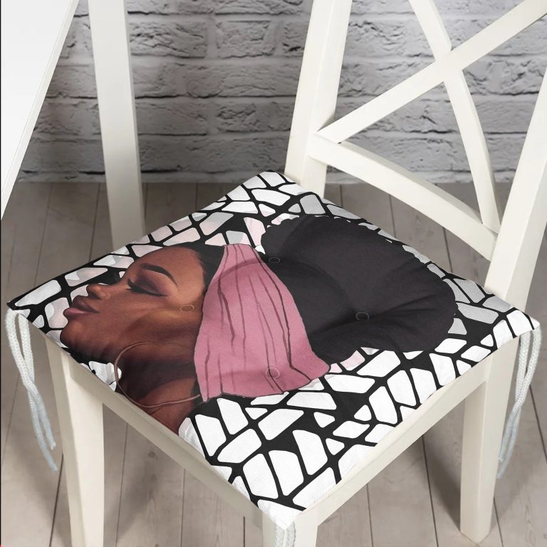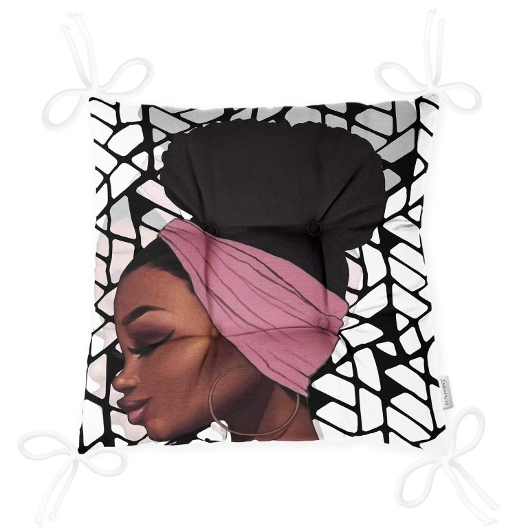 Geometrik Zeminli Siyahi Kadın Figürlü Pofidik Sandalye Minderi