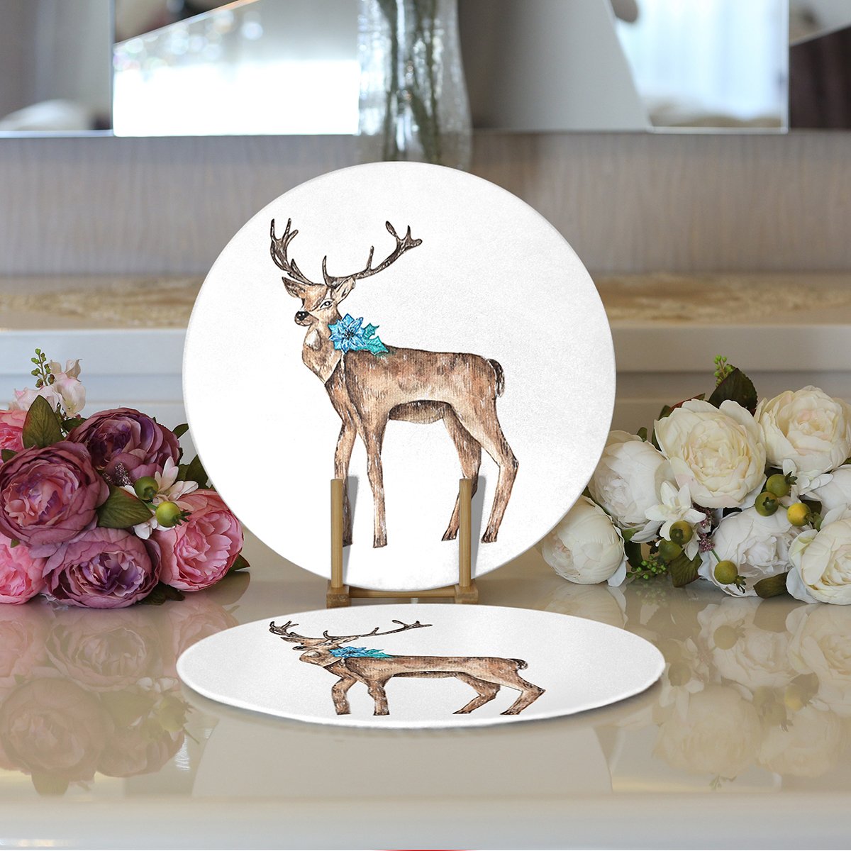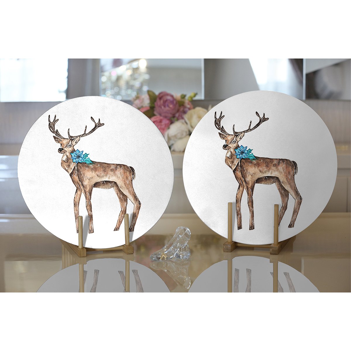 Geyik Çizimli Dijital Baskılı Dekoratif Yuvarlak Servis Altlığı – Supla