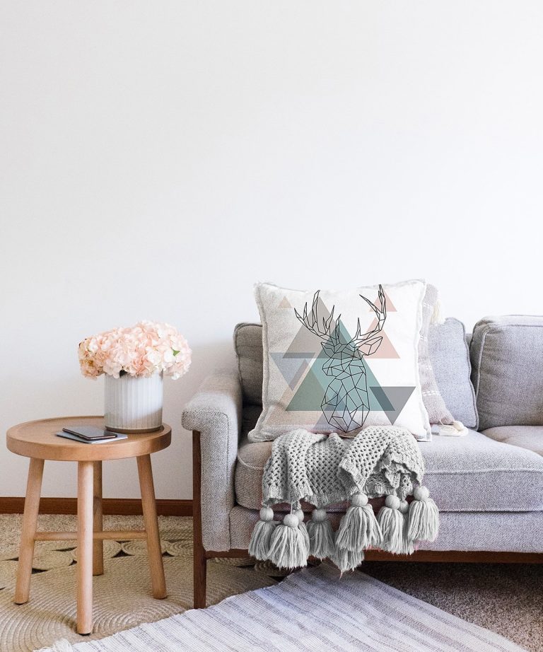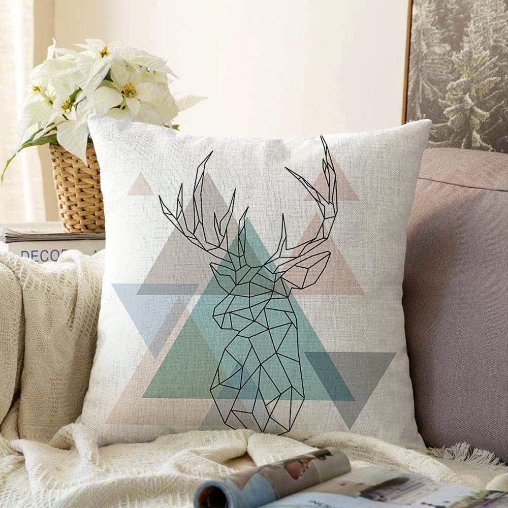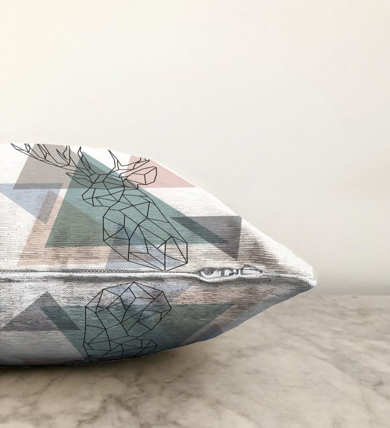 Geyik Çizimli Modern Dijital Baskılı Raşel Yastık Kılıfı