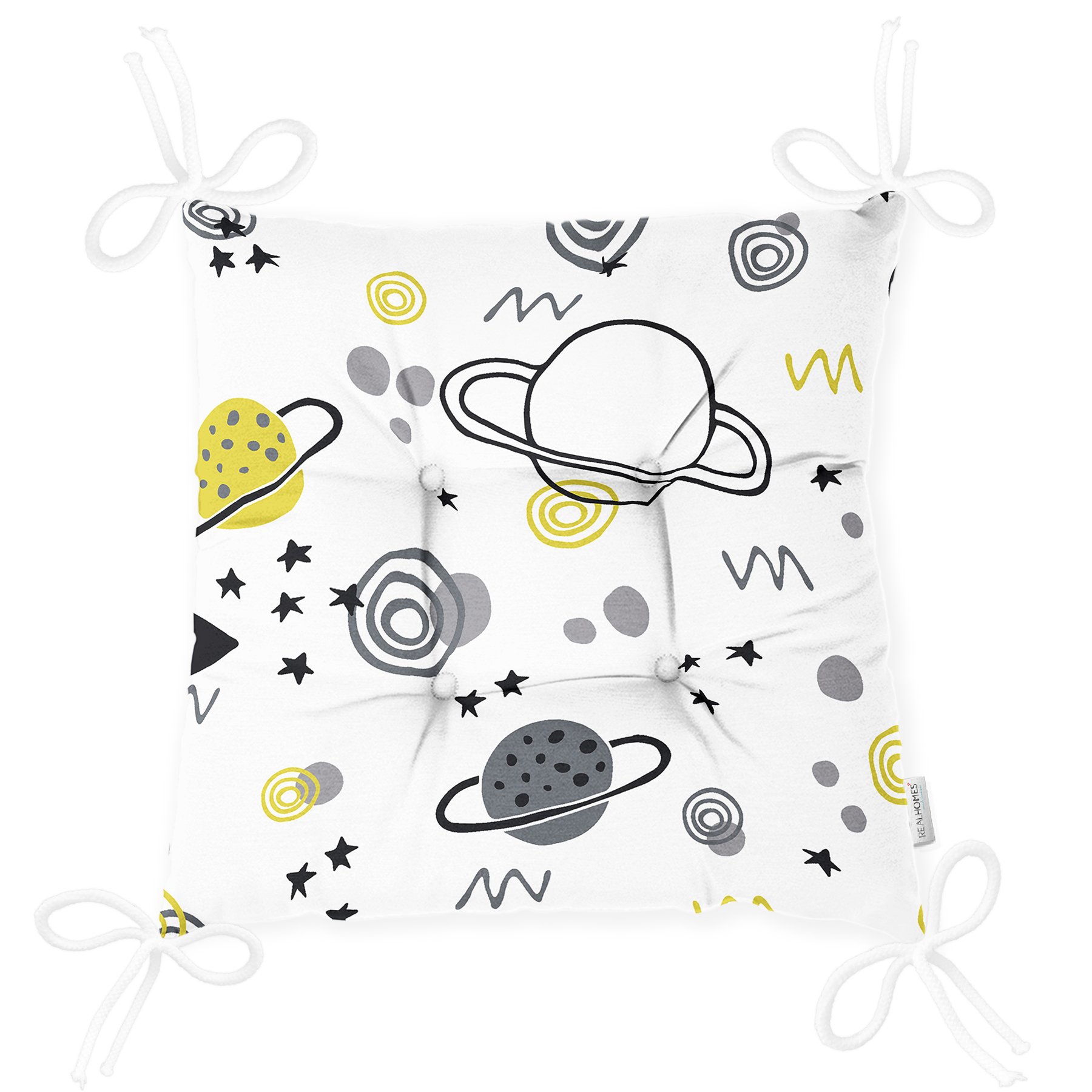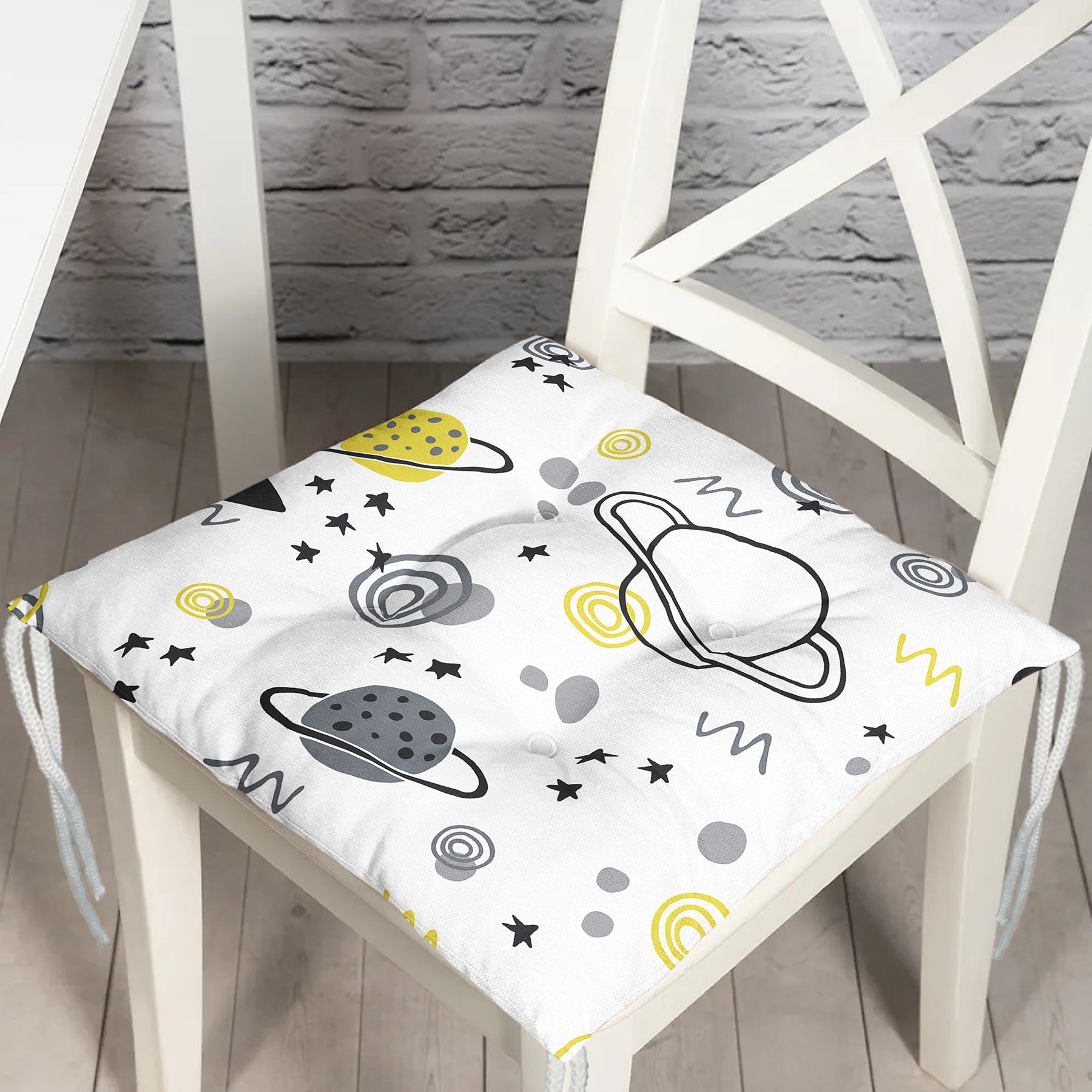 Gezegen Motifli Dijital Baskılı Özel Tasarım Modern Pofidik Sandalye Minderi