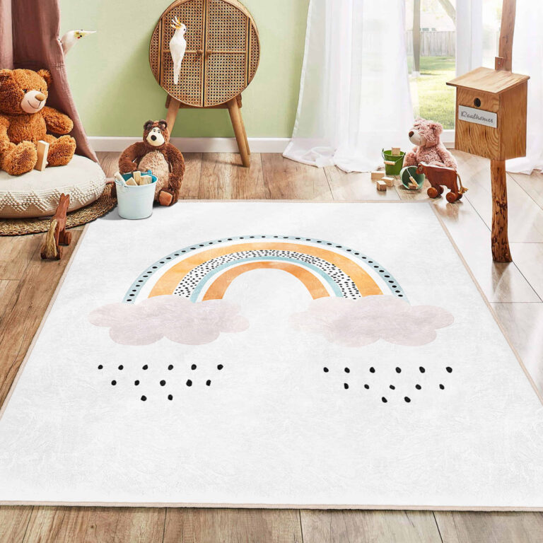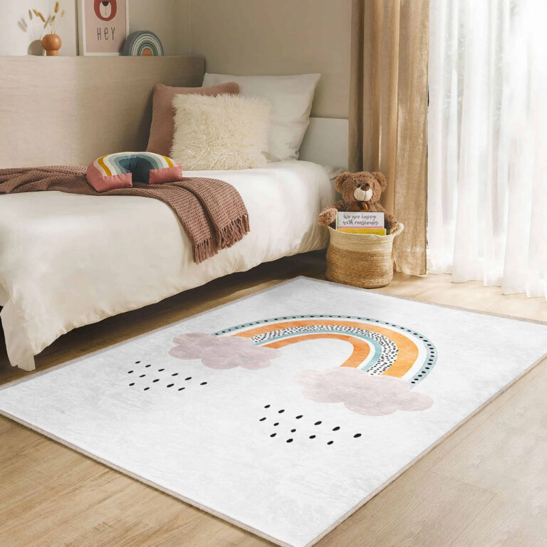 Gökkuşağı Desenli Yıkanabilir Kaymaz Taban Çocuk Halısı – Renkli ve Eğlenceli Seçeneklerle