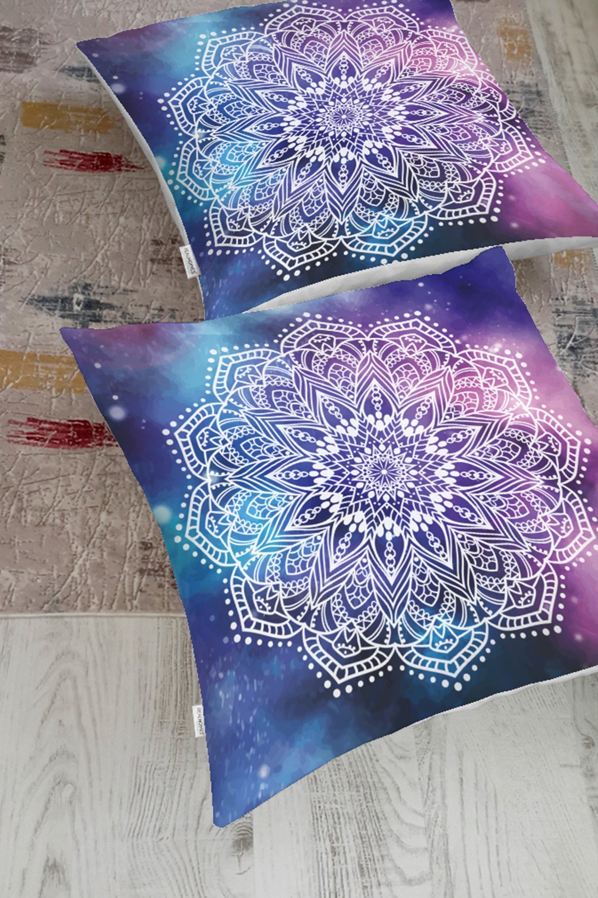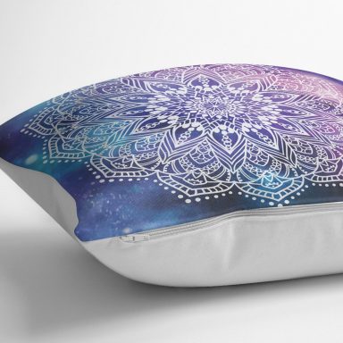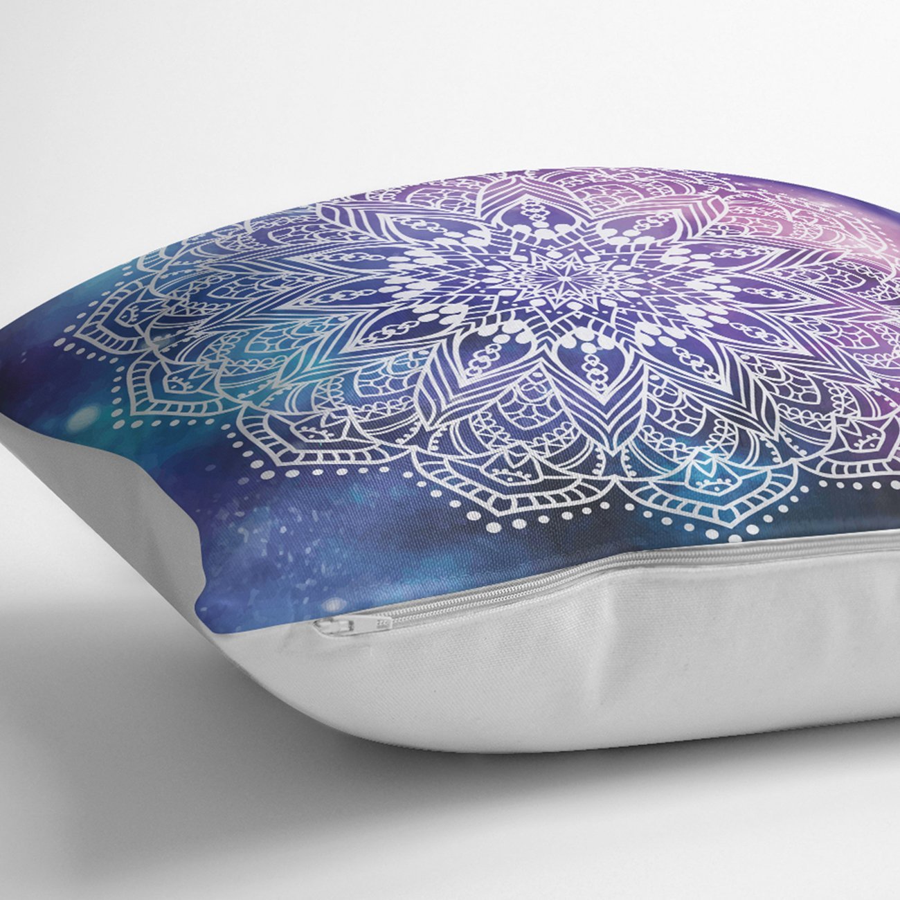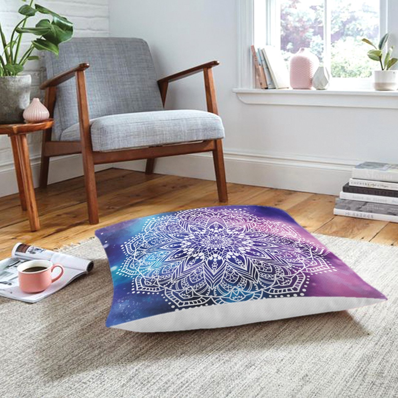 Gökkuşağı Zemininde Beyaz Mandala Çizimli Dekoratif Yer Minderi