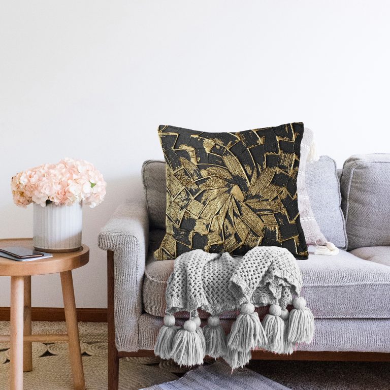 Gold Detaylı Dijital Baskılı Özel Tasarım Dekoratif Raşel Yastık Kırlent Kılıfı