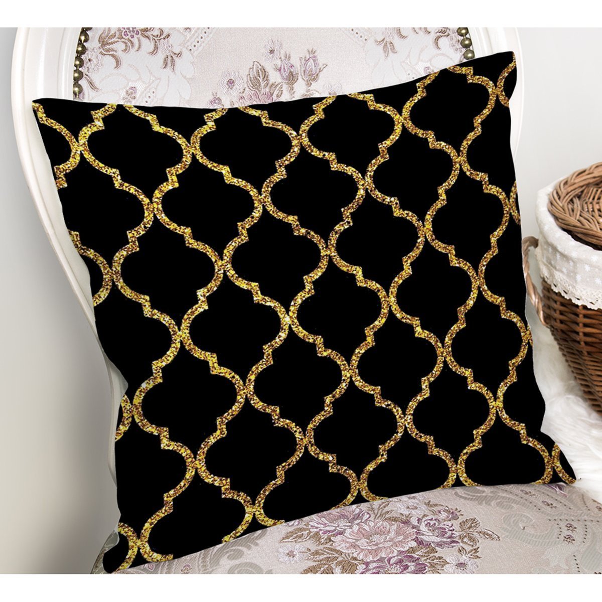 Gold Detaylı Ogea Desenli Dekoratif Modern Yastık Kırlent Kılıfı