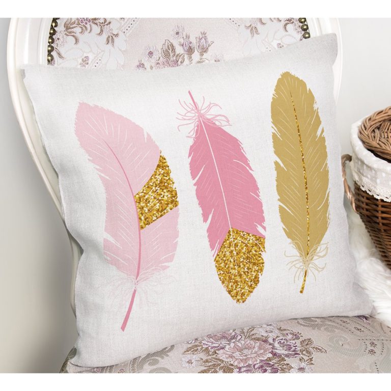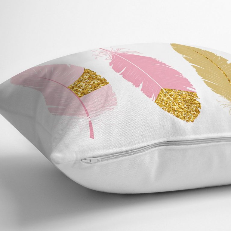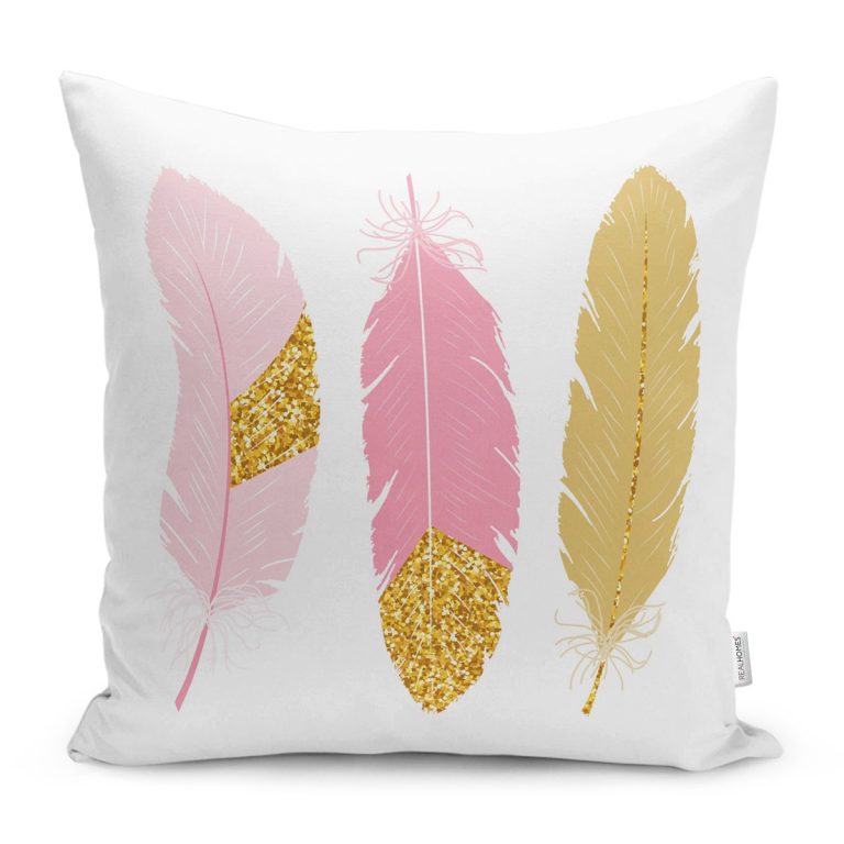 Gold Detaylı Renkli Tüy Tasarımlı Modern Yastık Kırlent Kılıfı