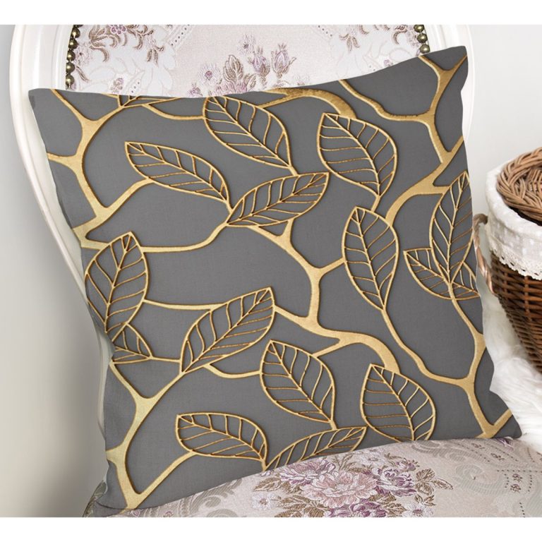 Gold Detaylı Yaprak Motifli Özel Tasarım Dekoratif Yastık Kırlent Kılıfı