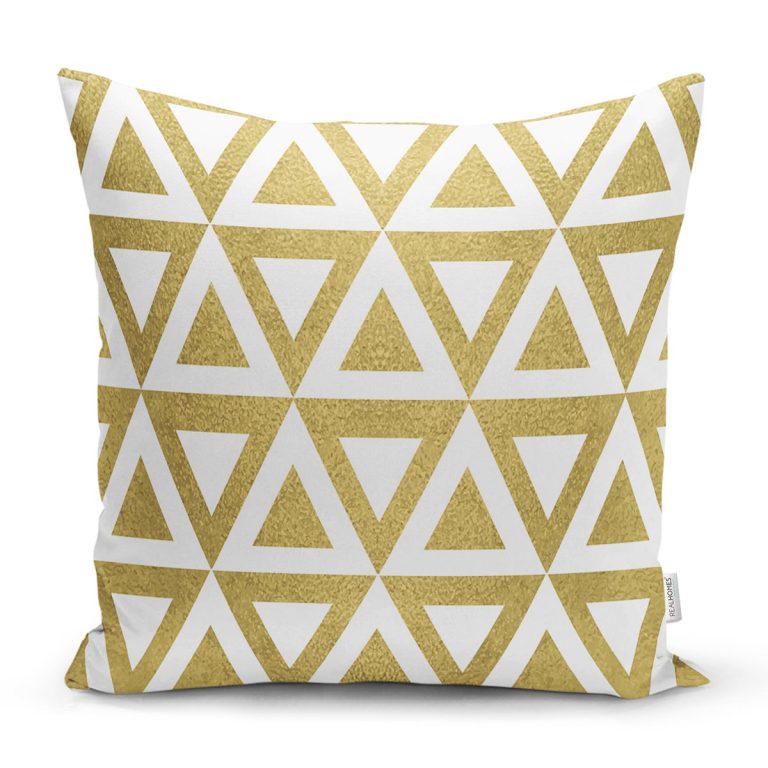 Gold Zeminde Gold Ucgen Detaylı Dijital Baskılı Modern Yastık Kırlent Kılıfı