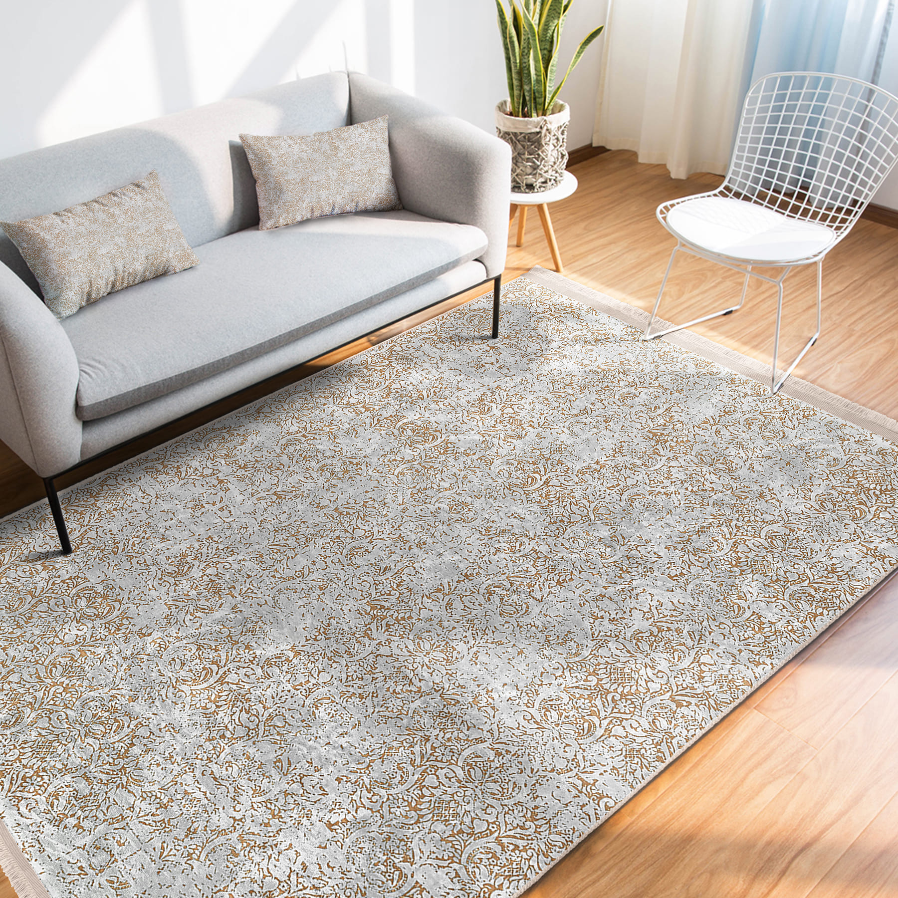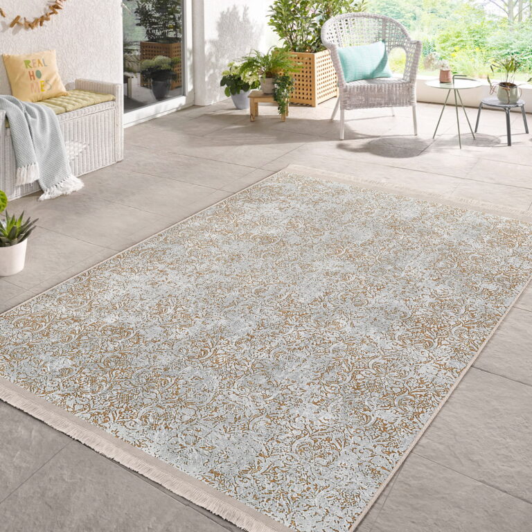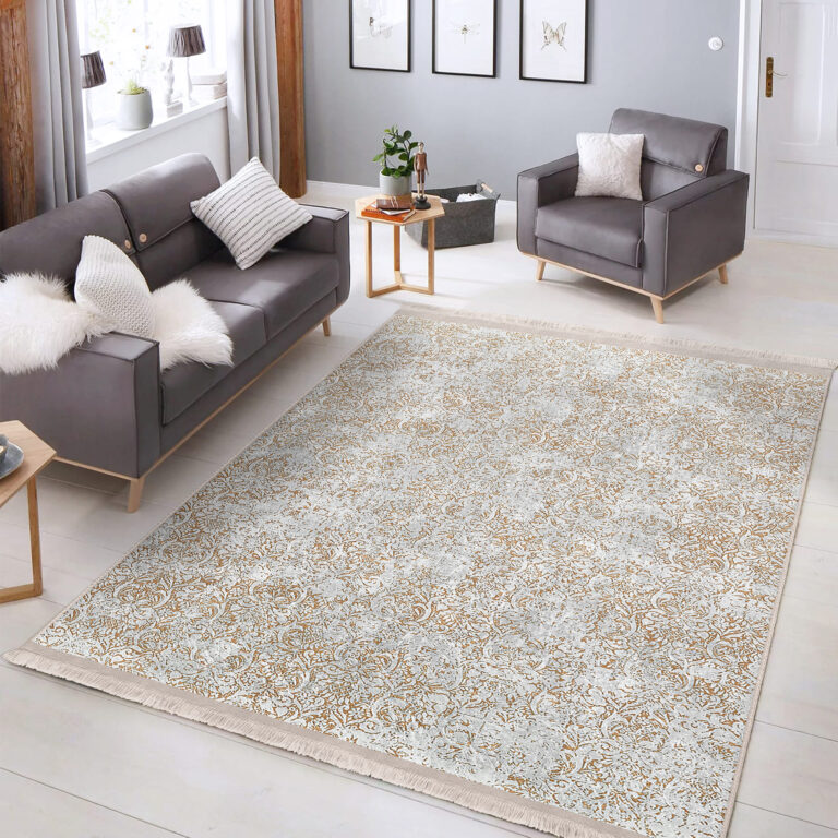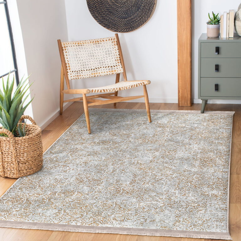 Gri – Bej Zeminde Örgü Motifli Etnik Desenli Sade & Şık Vintage Salon & Oturma Odası Mutfak Dijital Baskılı Makinede Yıkanabilir Kaymaz Taban Saçaklı Halı