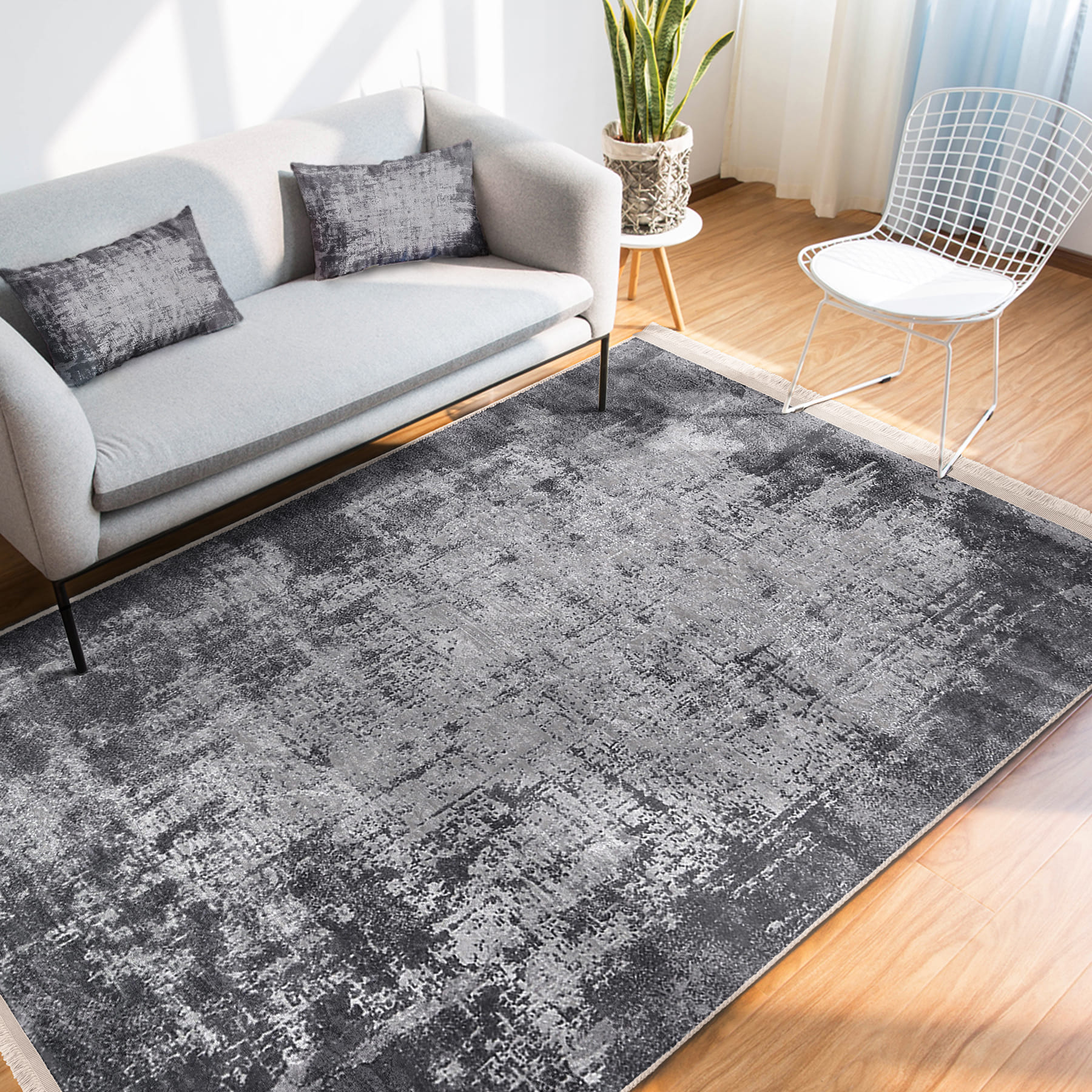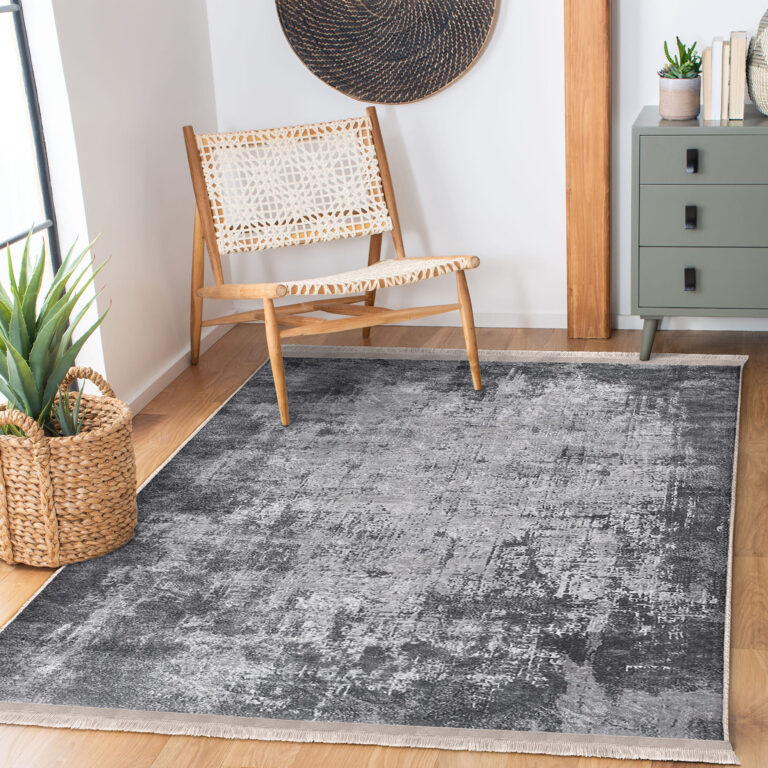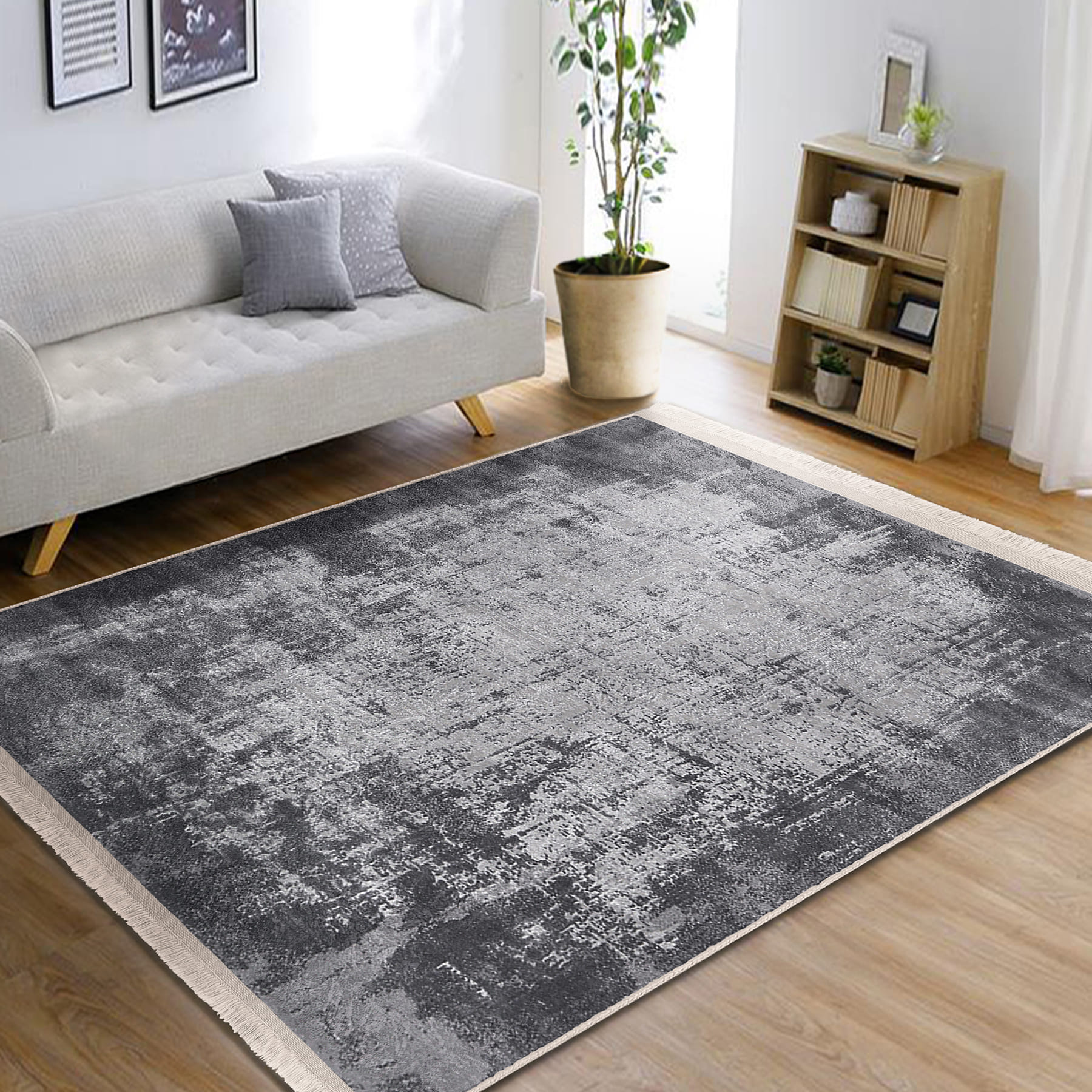 Gri – Füme Zeminde Dokuma Motifli Antika Desenli Eskitme Motifli Sade & Şık Yatak Odası Salon & Oturma Odası Dijital Baskılı Makinede Yıkanabilir Kaymaz Taban Saçaklı Halı