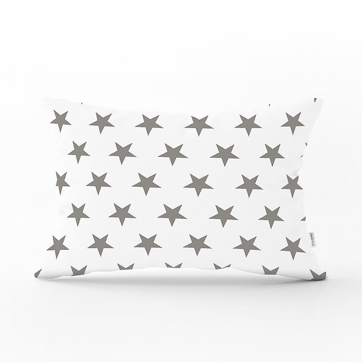Gri Yıldız Şekilli Dekoratif Dikdörtgen Yastık Kılıfı