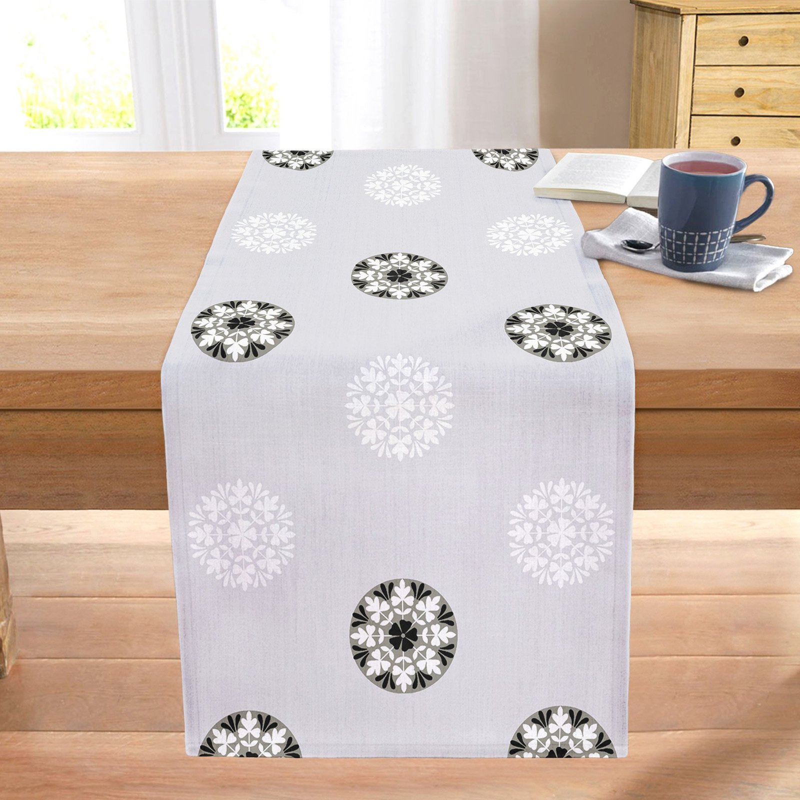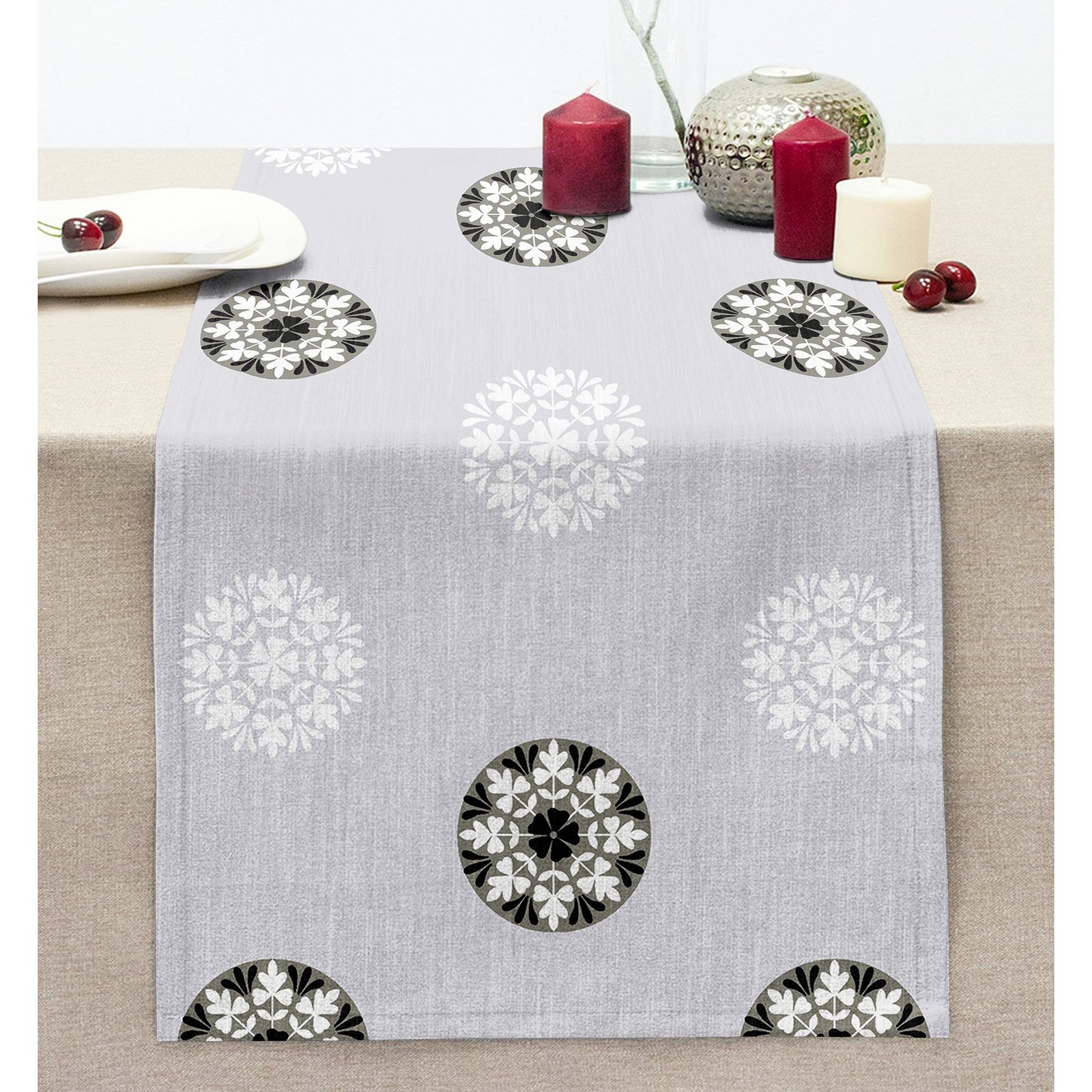 Gri Zemin Minimal Damask Motifli Dikişli Şönil Runner