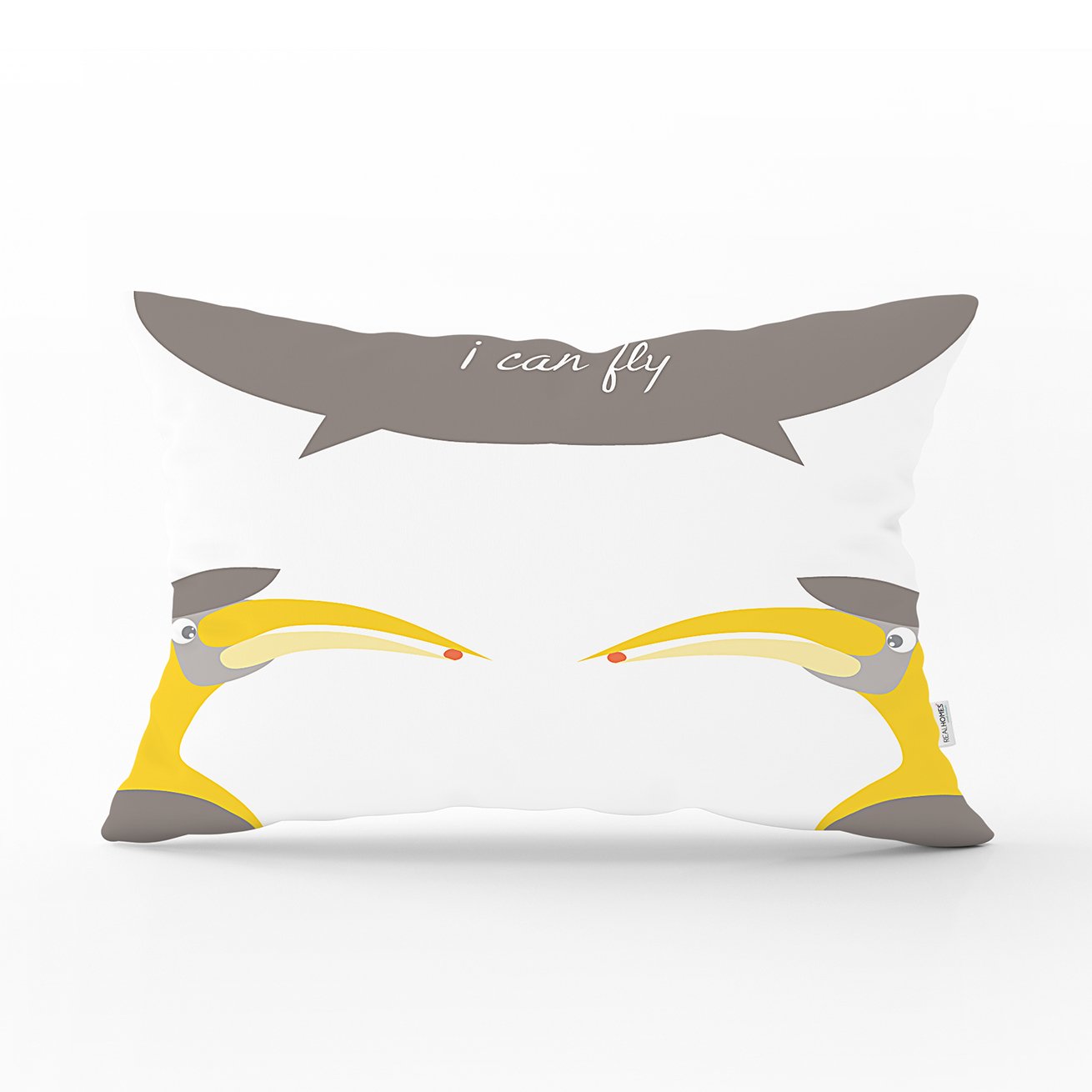 Gri Zeminde Ayıcık Motifli Bebek Odası Dikdörtgen Yastık Kılıfı
