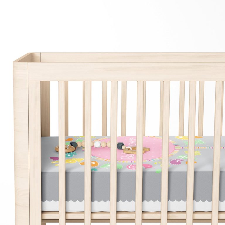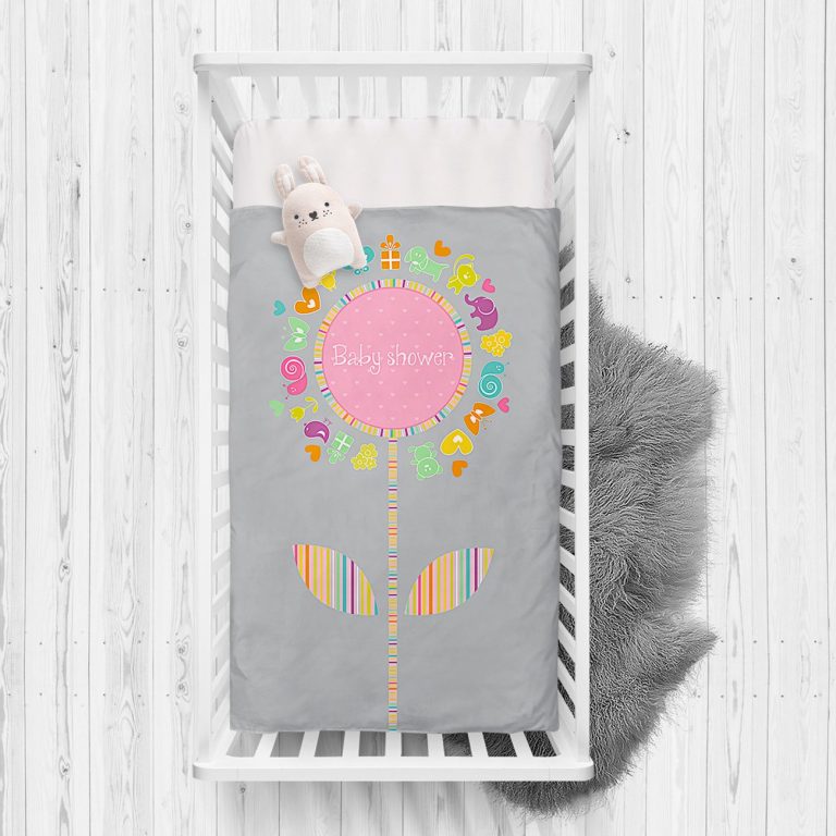 Gri Zeminde Baby Shower Tasarımlı Çocuk Odası Yatak Örtüsü