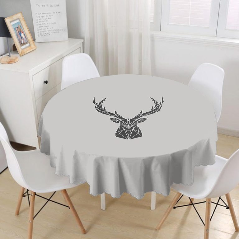 Gri Zeminde Geometrik Geyik Çizimli Modern Yuvarlak Masa Örtüsü – Çap 140cm