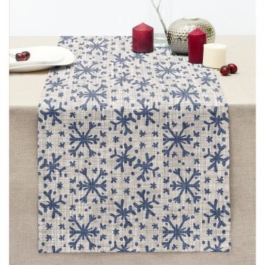 Gri Zeminde Kar Taneleri Dijital Baskılı Dekoratif Dikişli Şönil Runner