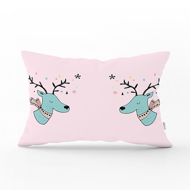 Gri Zeminde Mavi Geyik Çizimli Bebek Odası Dikdörtgen Yastık Kılıfı