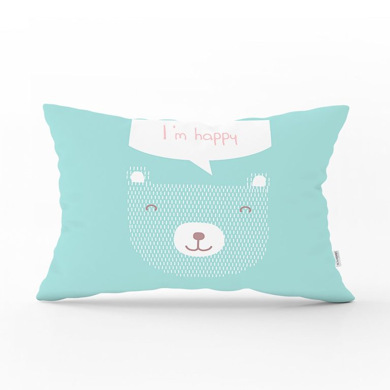 Gri Zeminde Mutlu Ayıcık Desenli Bebek Odası Dikdörtgen Yastık Kılıfı