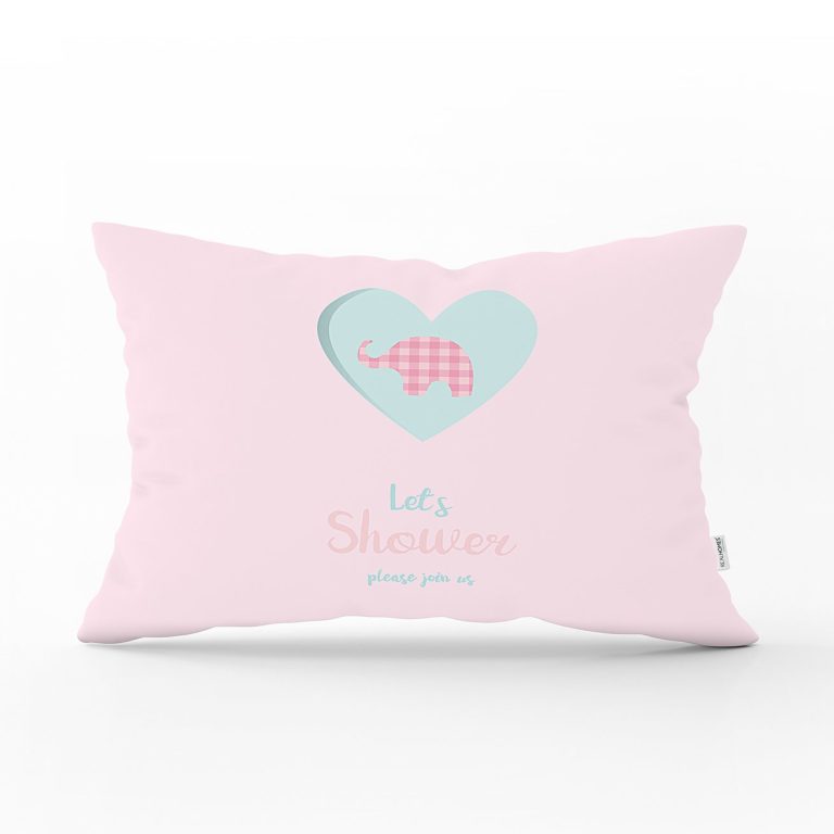 Gri Zeminde Pembe Fil Motifli Bebek Odası Dikdörtgen Yastık Kılıfı