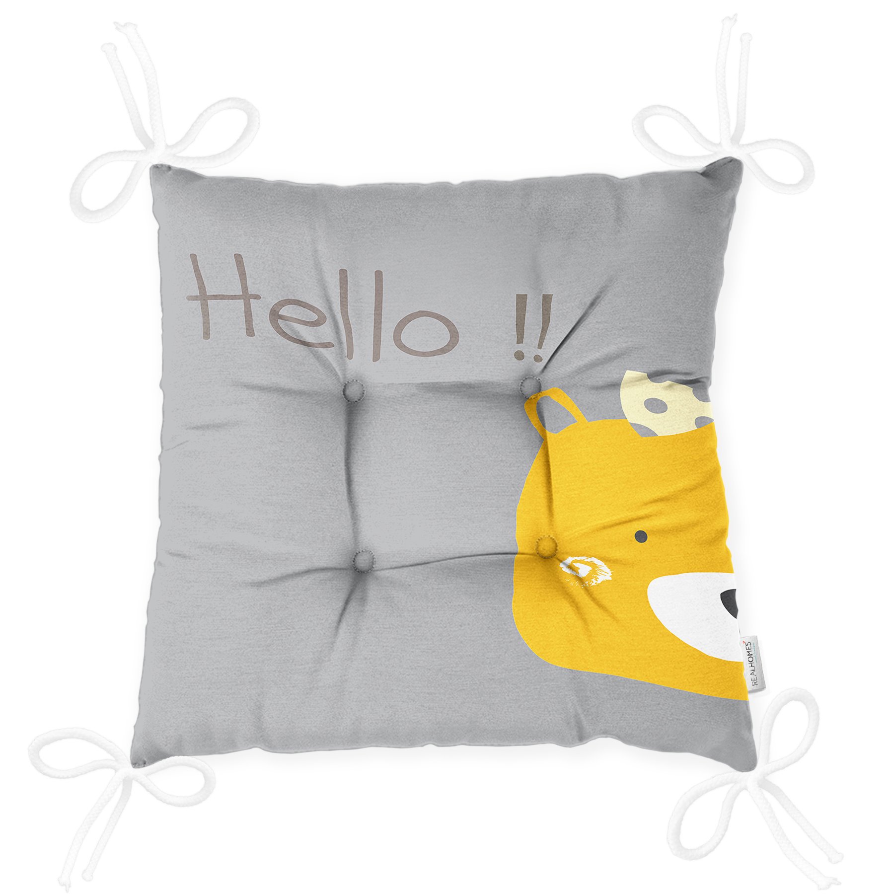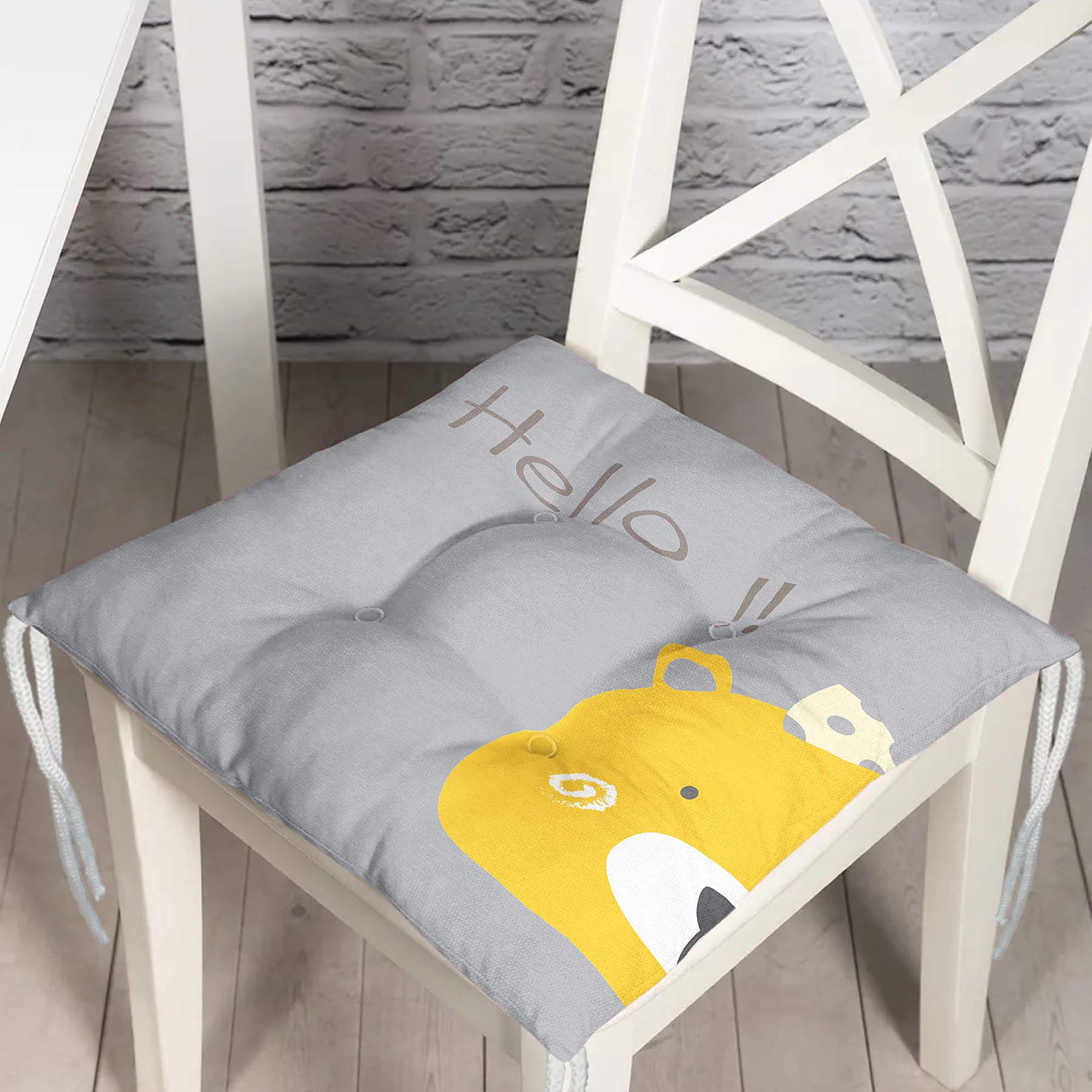 Gri Zeminde Sarı Ayıcık Hello Motifli Çocuk Odası Pofidik Sandalye Minderi