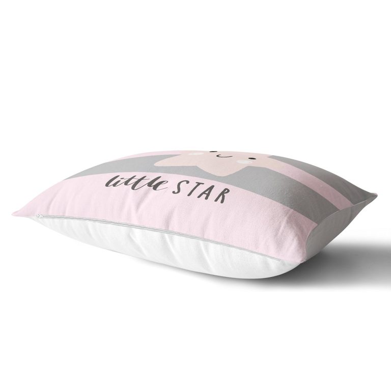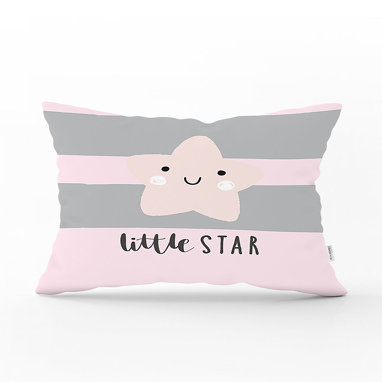 Gri Zeminde Sevimli Ayıcık Desenli Bebek Odası Dikdörtgen Yastık Kılıfı