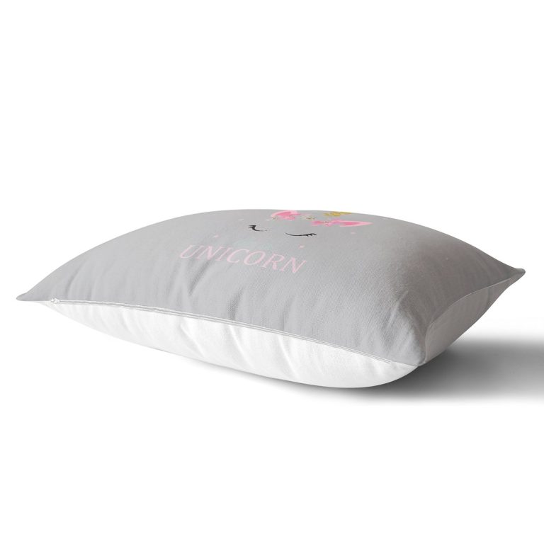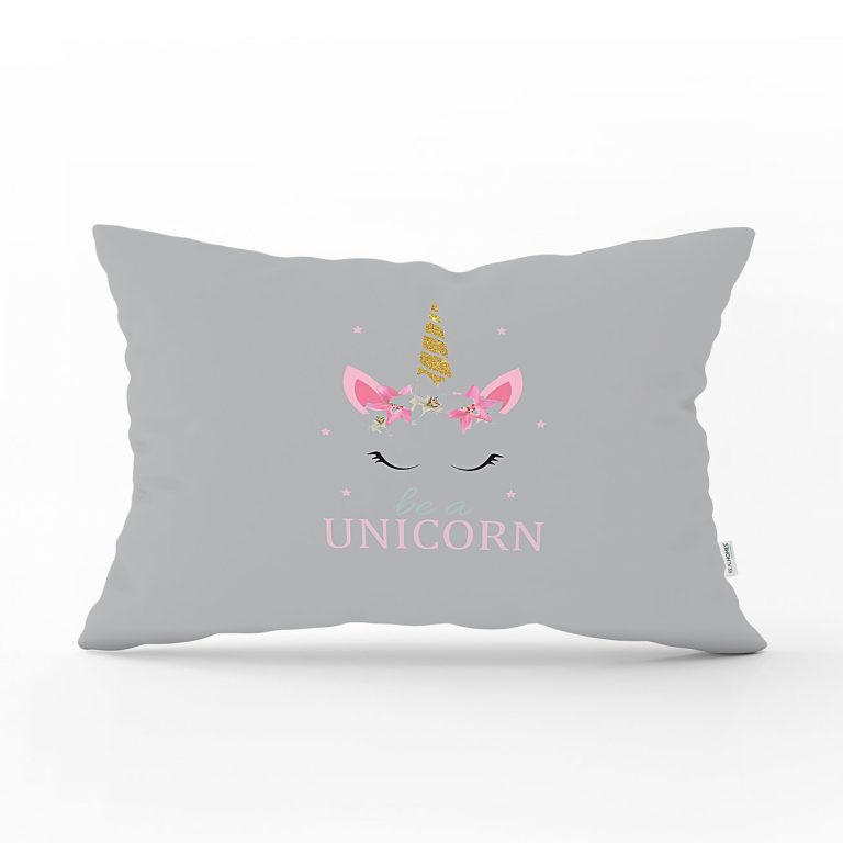 Gri Zeminde Unicorn Desenli Çocuk Odası Dikdörtgen Yastık Kılıfı