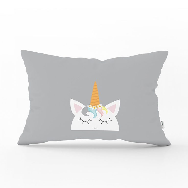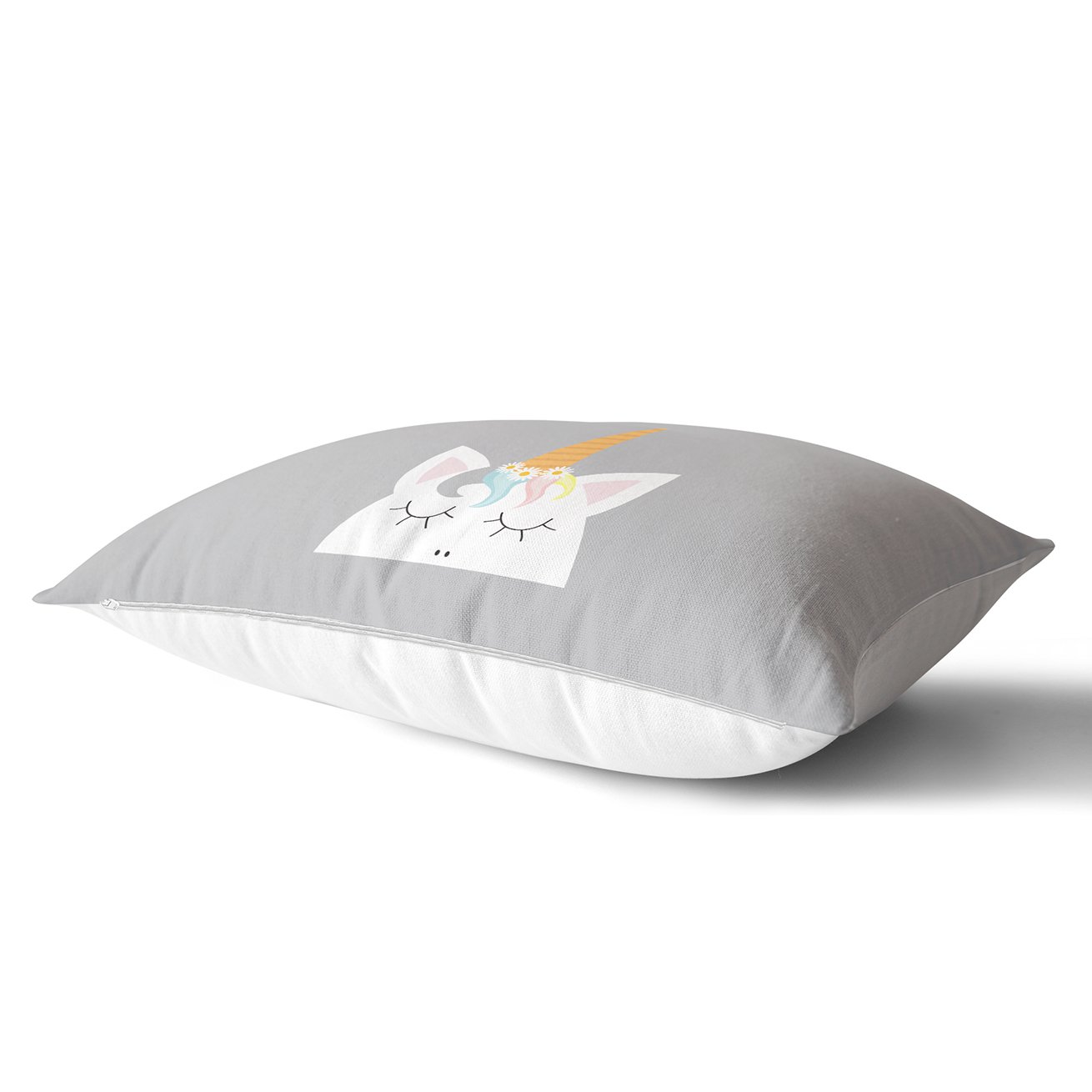 Gri Zeminde Unicorn Desenli Dekoratif Çocuk Odası Dikdörtgen Yastık Kılıfı