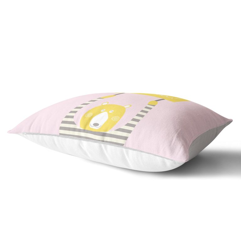 Gri Zeminde Unicorn Geyikler Tasarımlı Çocuk Odası Dikdörtgen Yastık Kılıfı