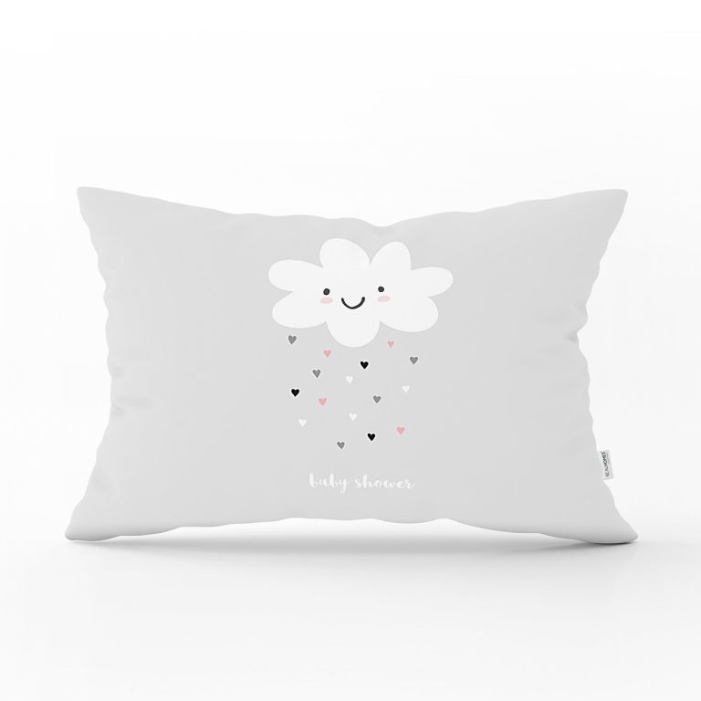 Gri Zeminde Yalnız Bulut Çocuk Odası Dikdörtgen Yastık Kılıfı