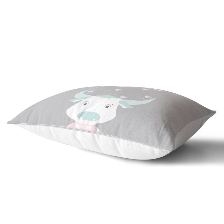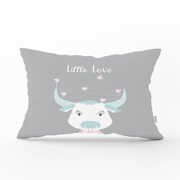 Gri Zeminli Haliday ve Kuşlar Özel Tasarım Bebek Odası Dikdörtgen Yastık Kılıfı