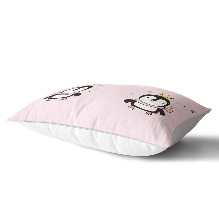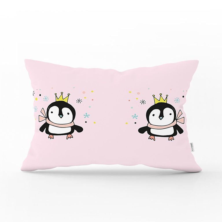 Gri Zeminli Uçan Sevimli Penguen Tasarımlı Bebek Odası Dikdörtgen Yastık Kılıfı