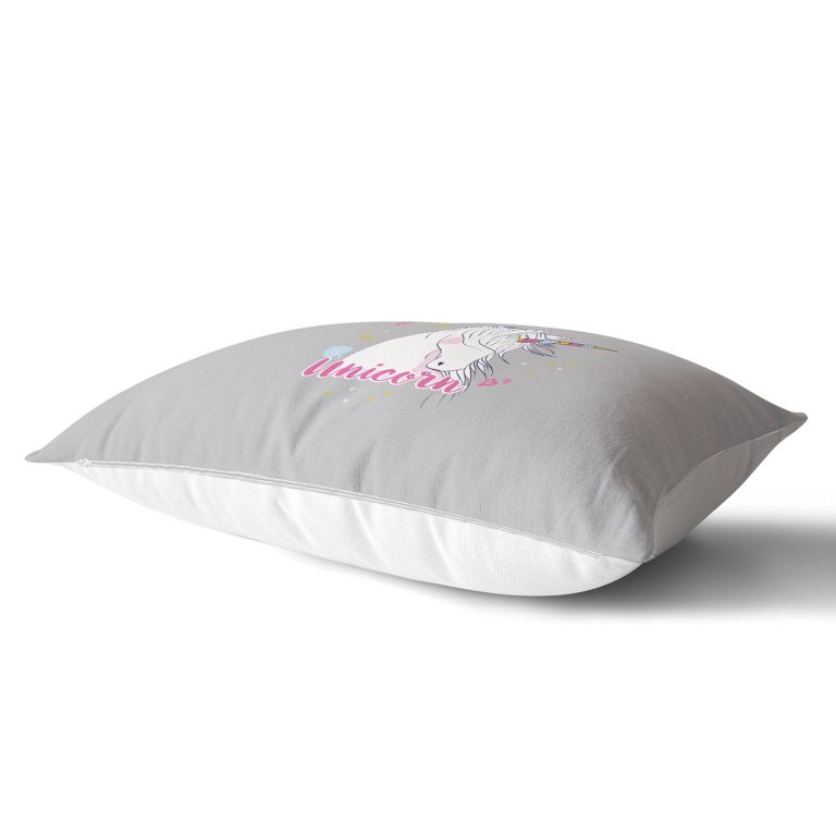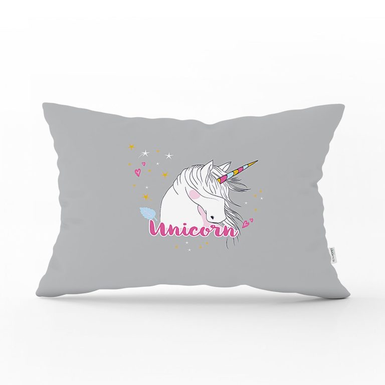 Gri Zeminli Unicorn At Desenli Özel Tasarım Çocuk Odası Dikdörtgen Yastık Kılıfı