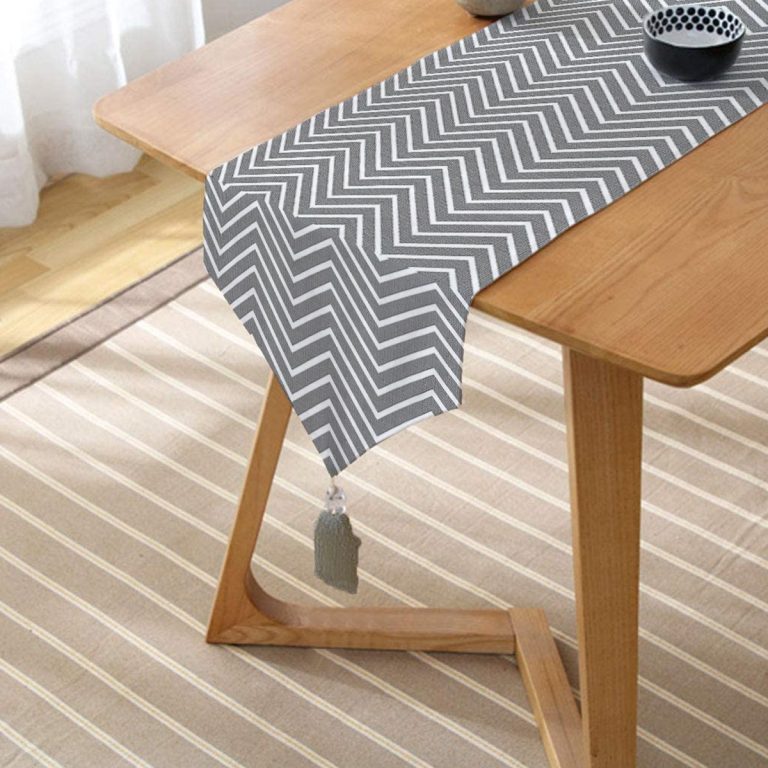 Gri Zigzag Temalı Dijital Baskılı Modern Dekoratif Püsküllü Şönil Üçgen Runner