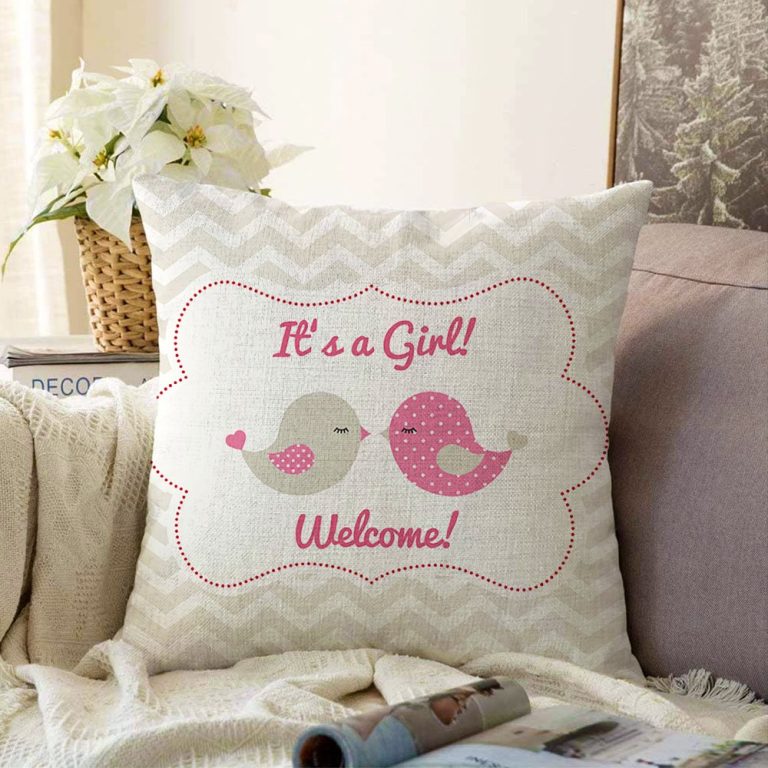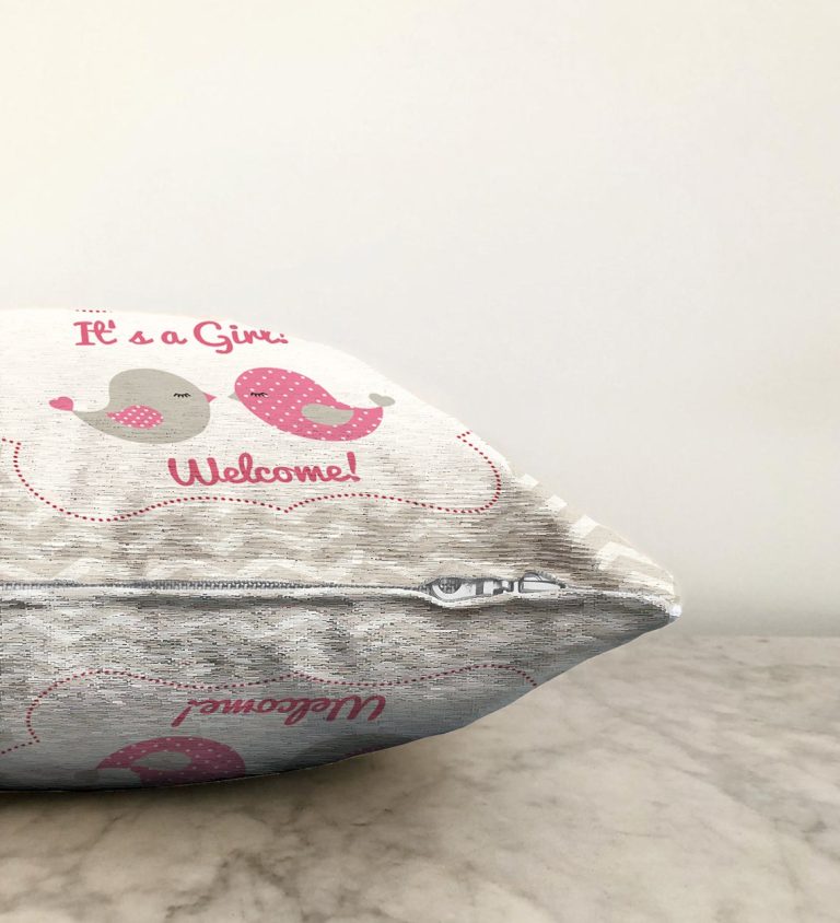 Gri Zigzag Temalı Kuş Motifli Dekoratif Raşel Yastık Kırlent Kılıfı