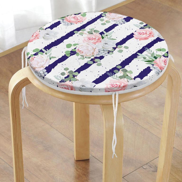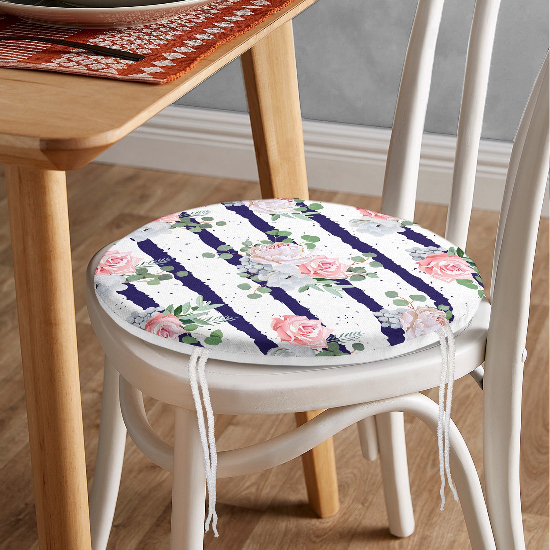 Gül Demeti Desenli Dijital Baskılı Yuvarlak Fermuarlı Sandalye Minderi