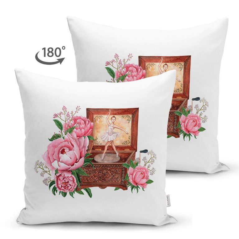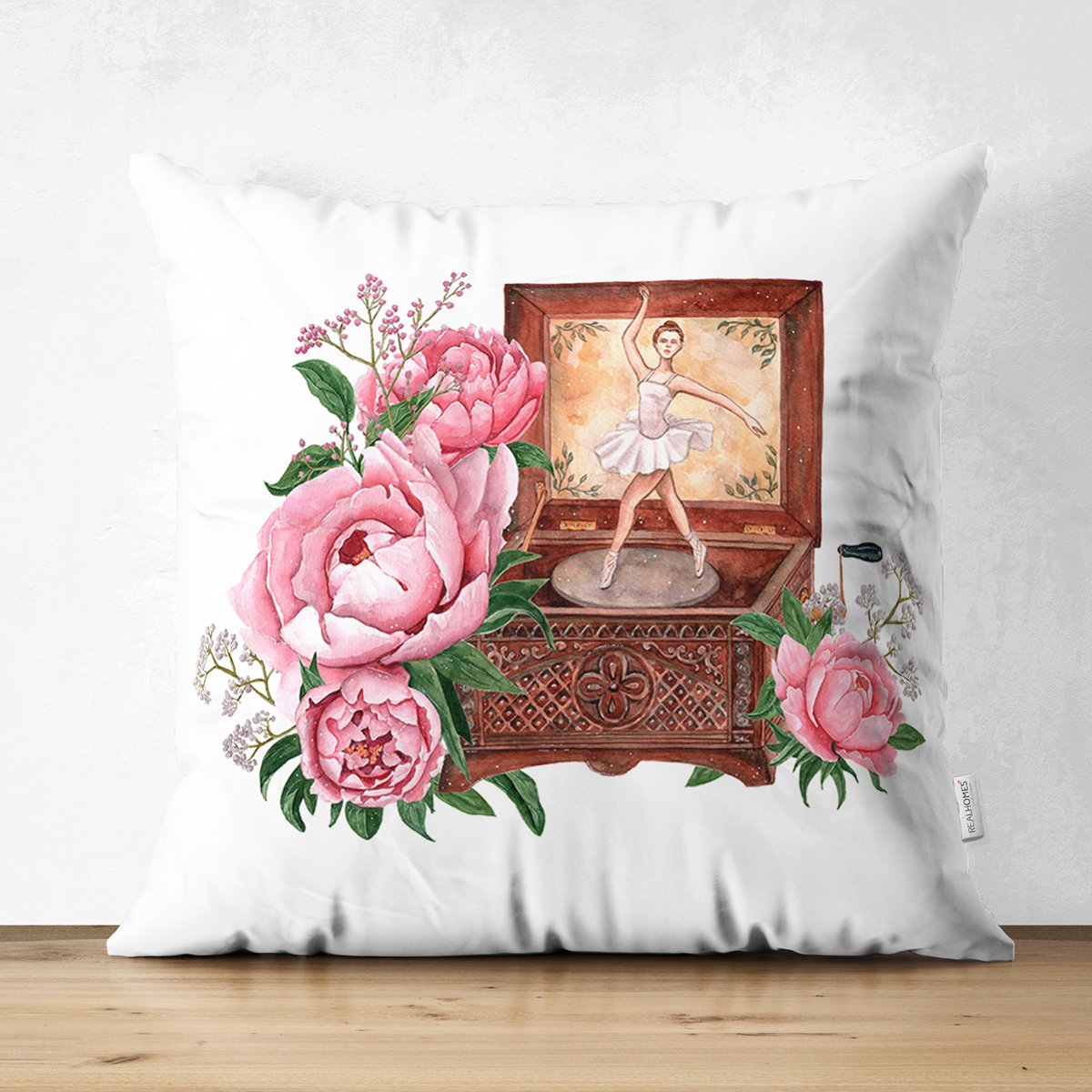 Gül Detaylı Müzik Kutusu Özel Tasarım Dijital Baskılı Modern Süet Yastık Kırlent Kılıfı