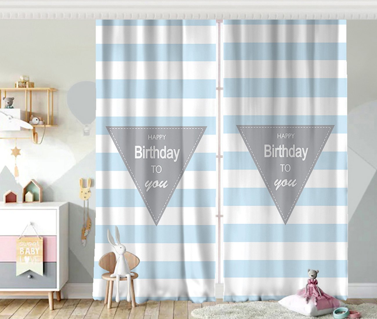Happy Birthday To You Tasarımlı Dijital Baskılı Bebek Odası Fon Perde