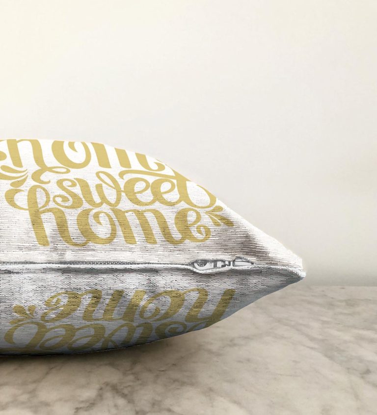Hardal Renk Home Sweet Home Dijital Baskılı Raşel Yastık Kırlent Kılıfı