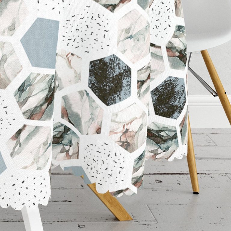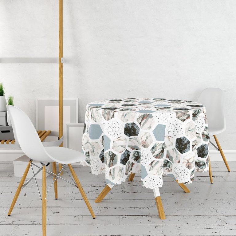 Hava Durumu Temalı Bal Peteği Motifli Dijital Baskılı Yuvarlak Masa Örtüsü – Çap 140cm