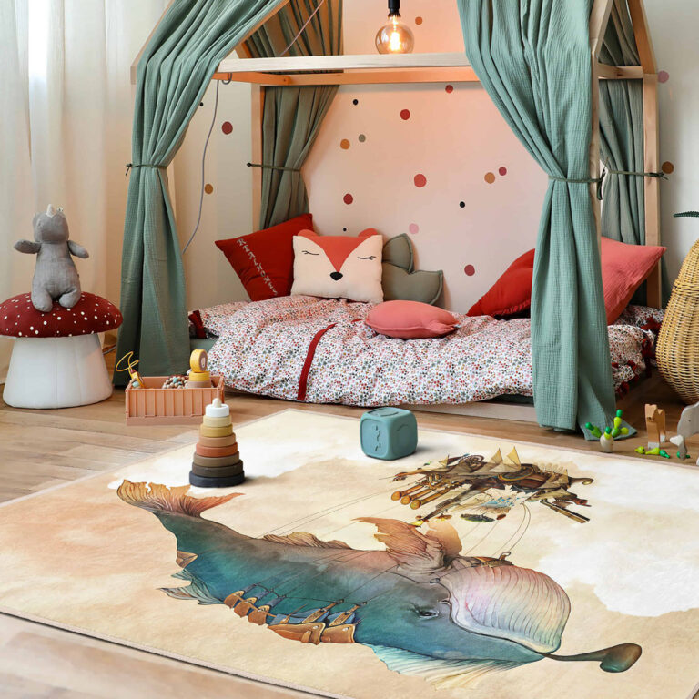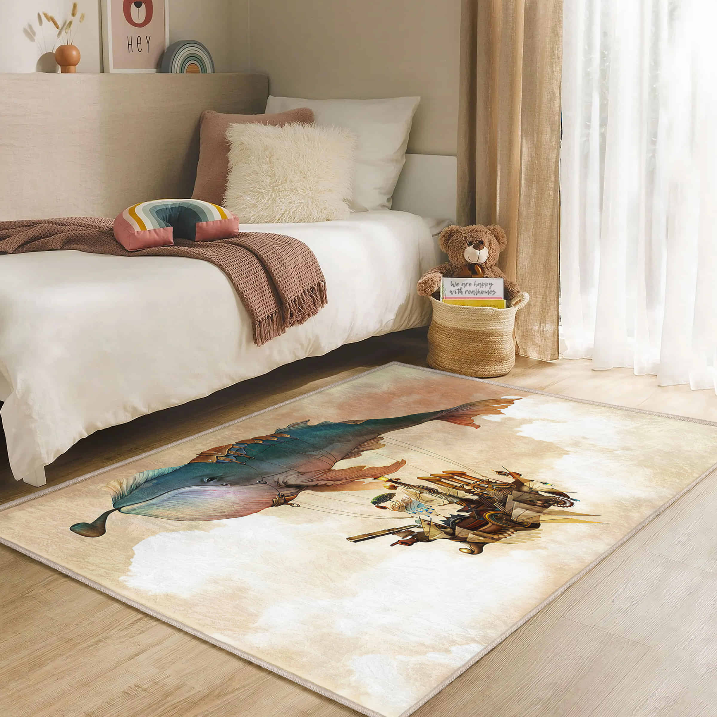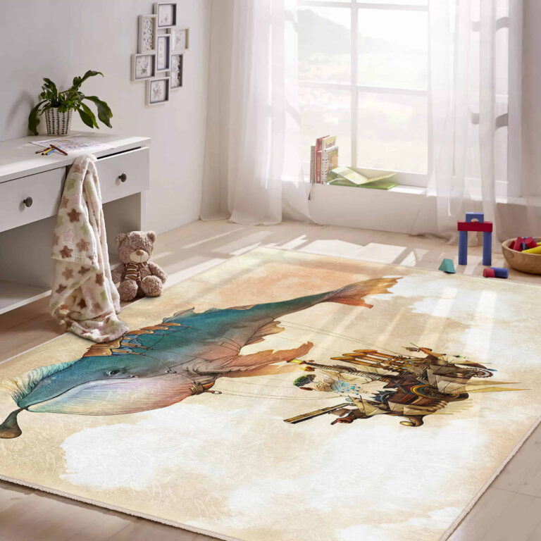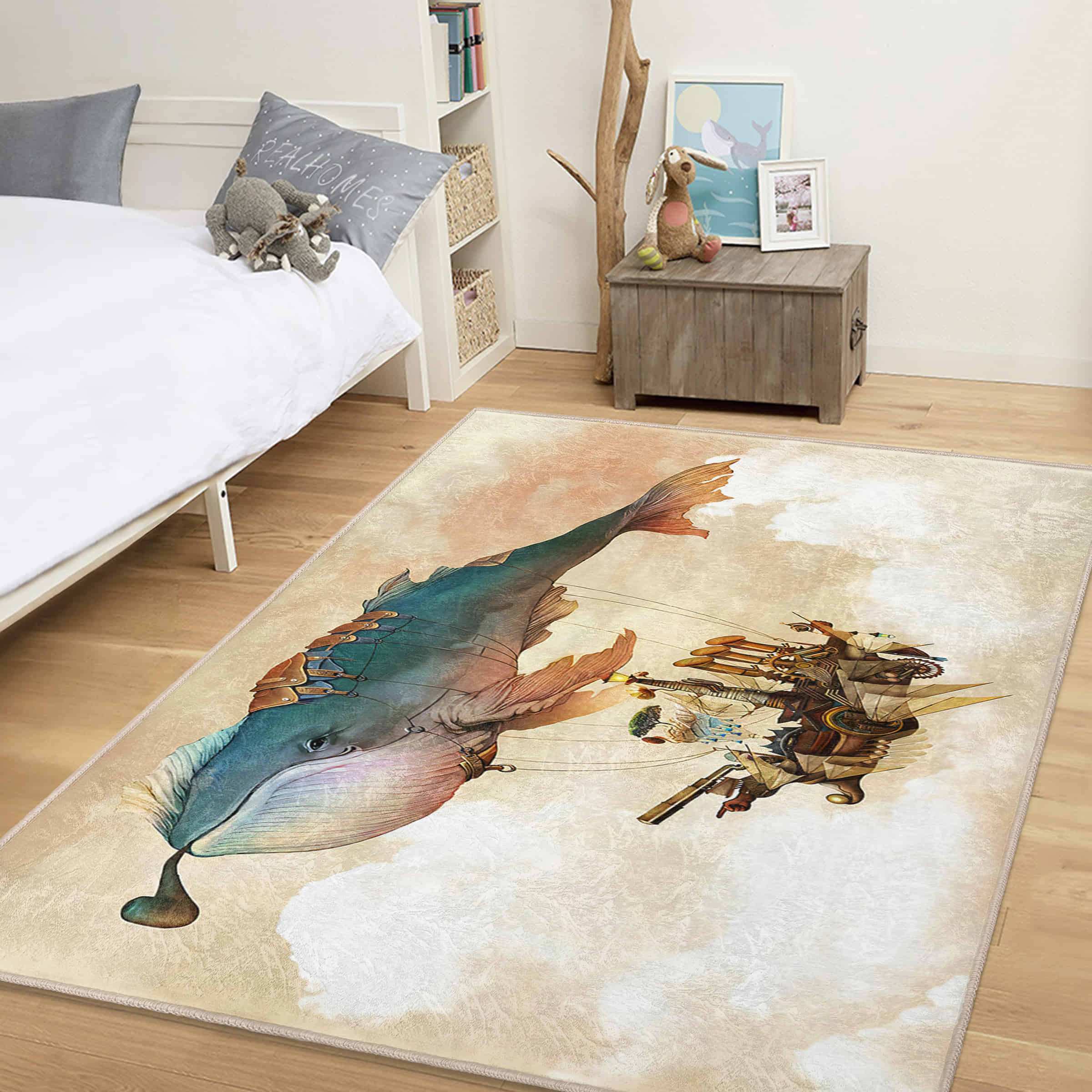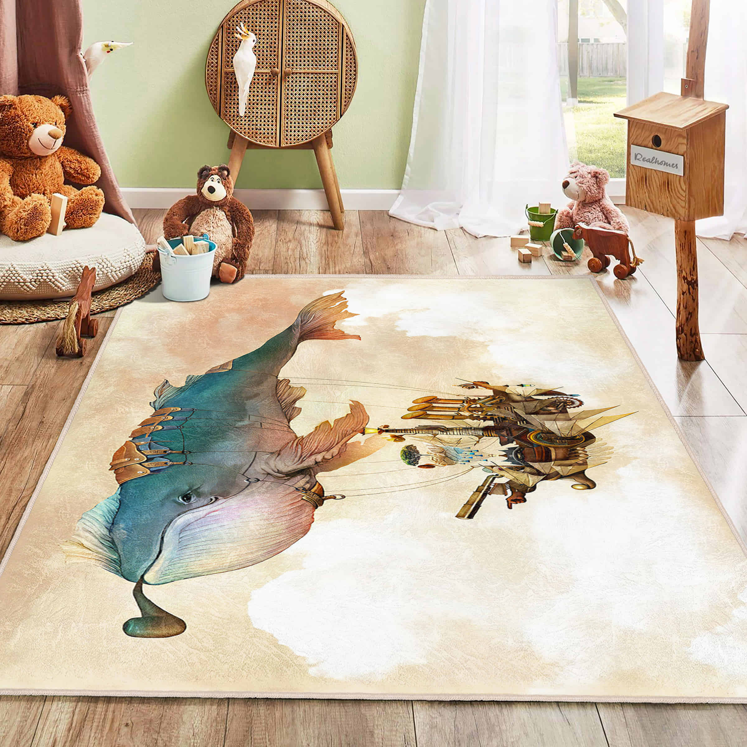 Hayalperest Balık Temalı 3D Dijital Baskılı Yıkanabilir Kaymaz Taban Çocuk Halısı