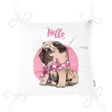 Hello Sevimli Köpek Dijital Baskılı Modern Pofidik Sandalye Minderi