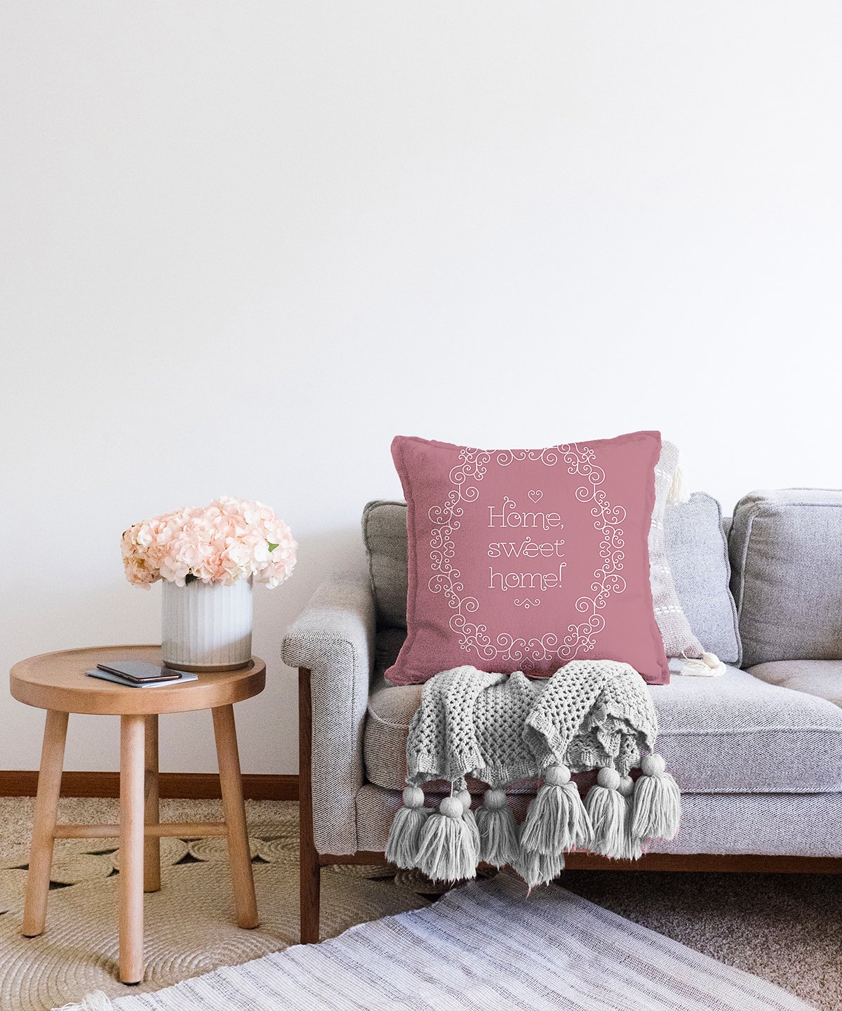 Home Sweet Home Dijital Baskılı Dekoratif Raşel Yastık Kırlent Kılıfı