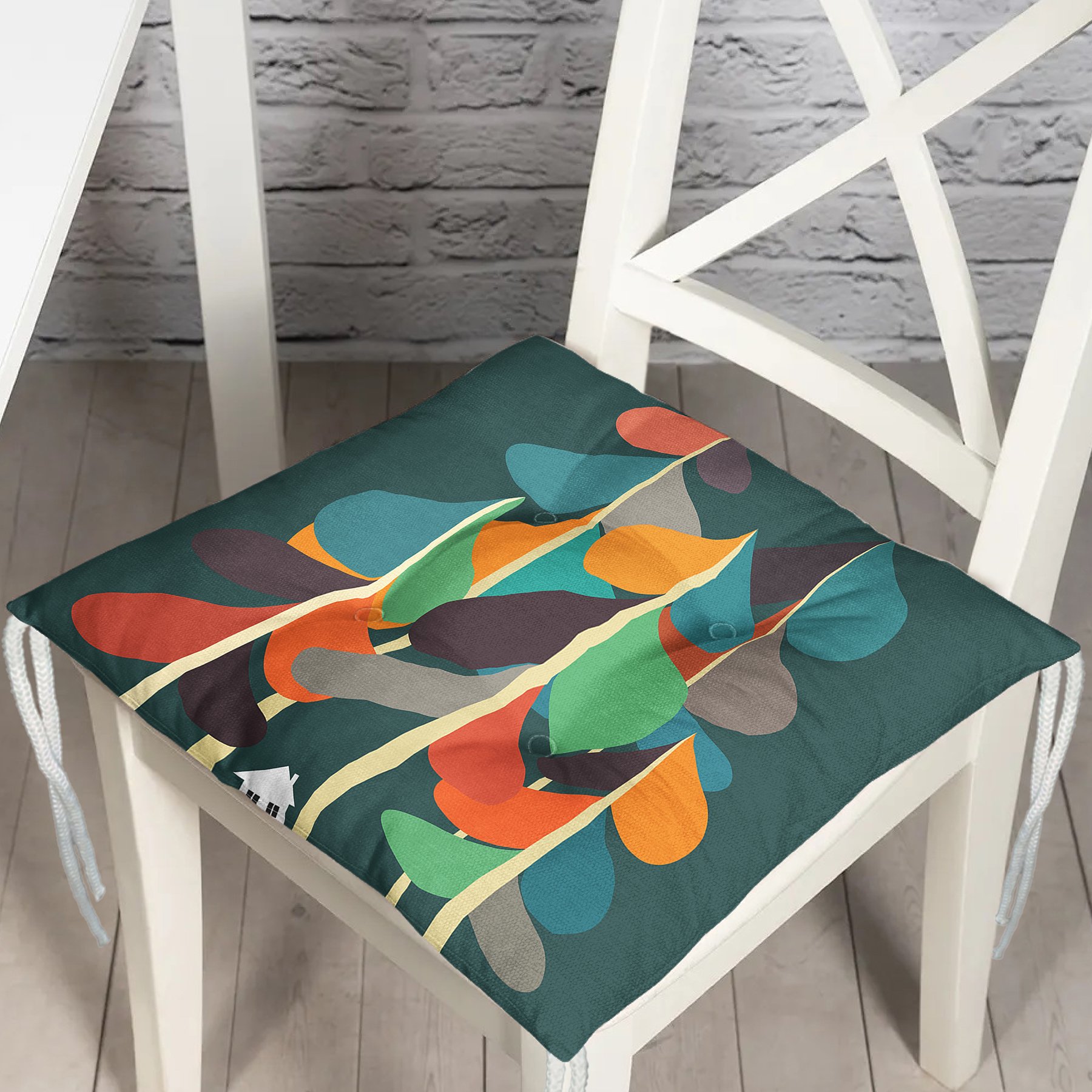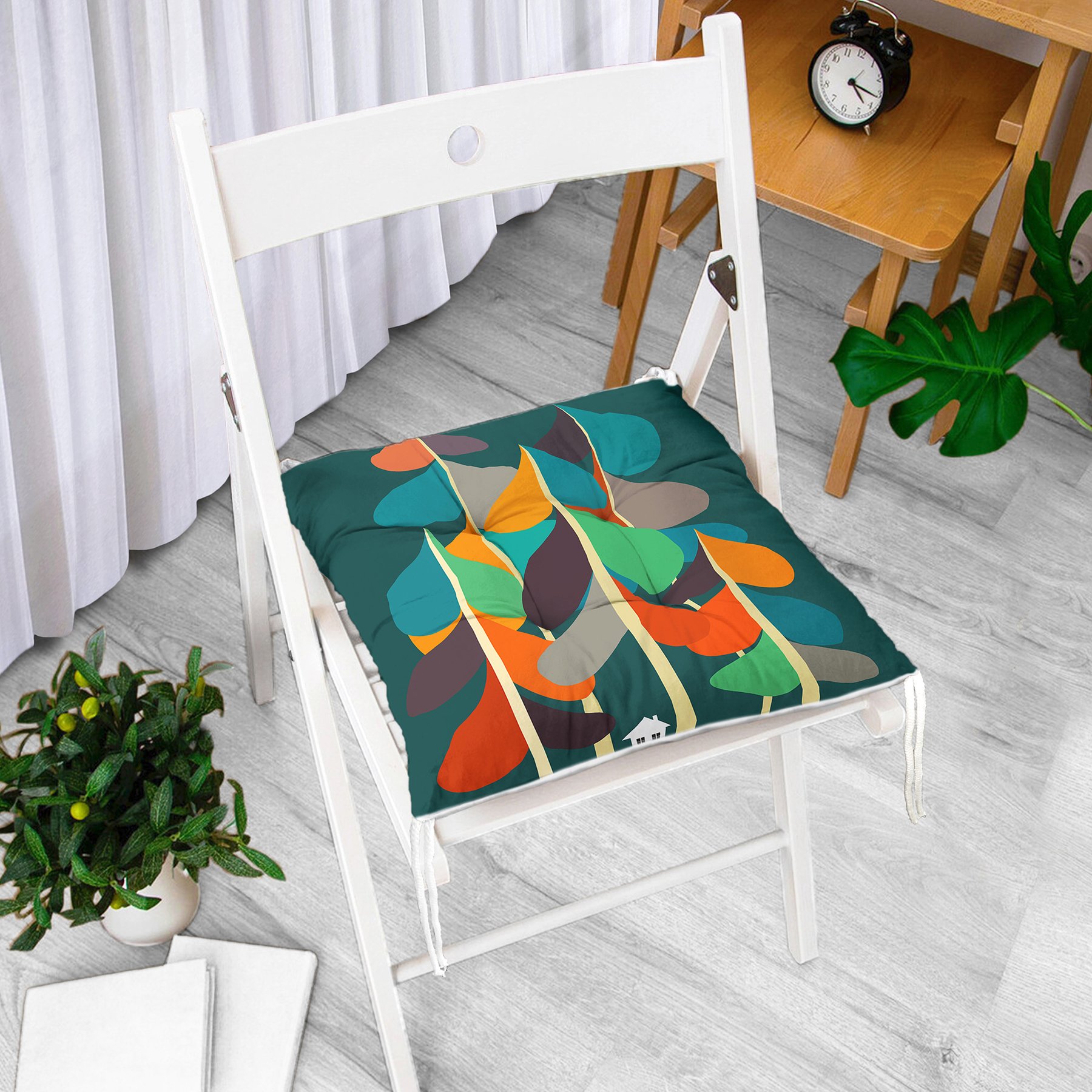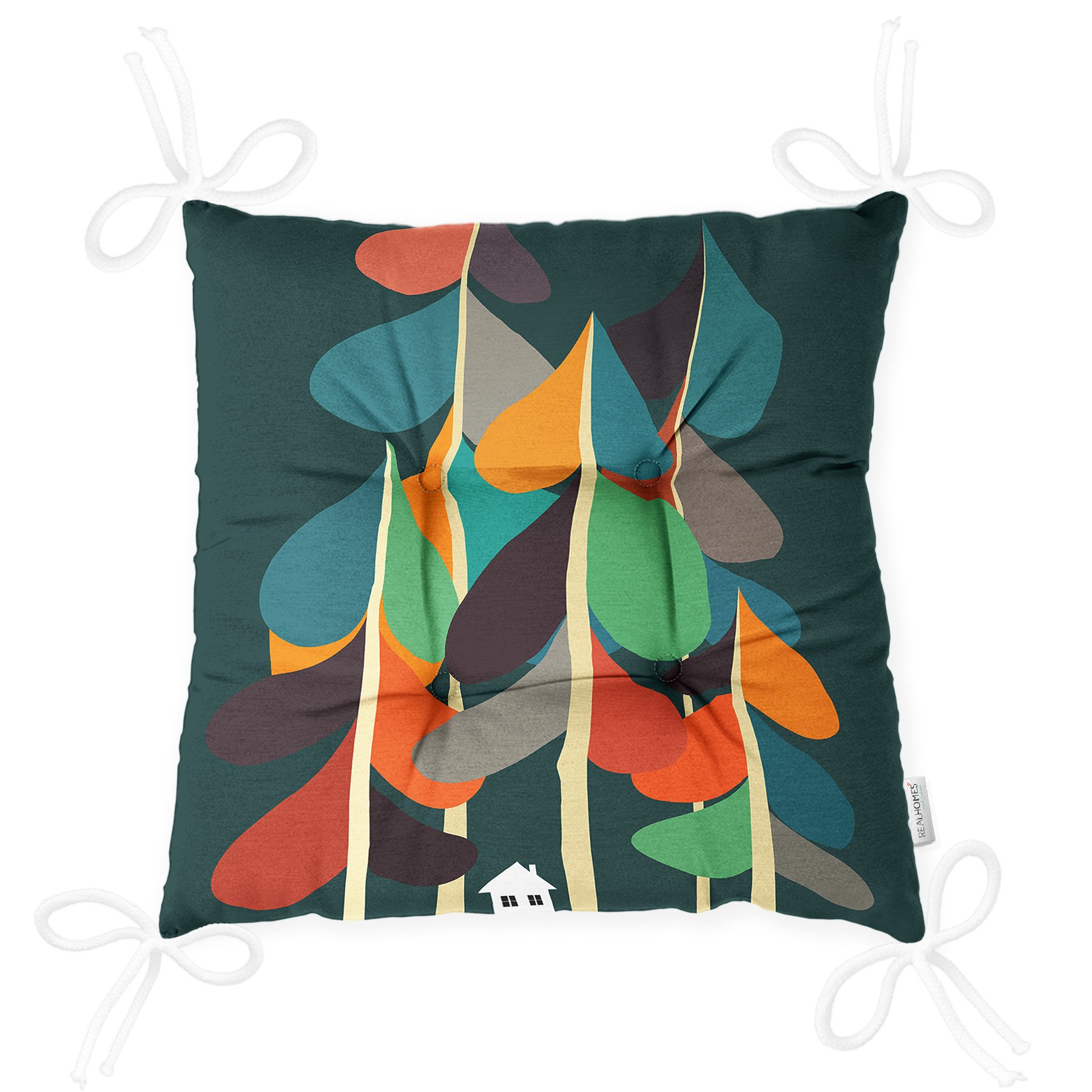 İllüstrasyon Ağaç Ve Ev Figürlü Özel Tasarım Dijital Baskılı Modern Pofidik Sandalye Minderi