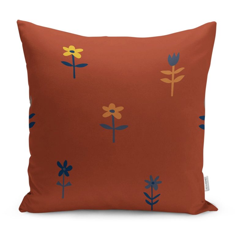Kahve Zemin Çiçek Figürlü Özel Tasarım Yastık Kırlent Kılıfı