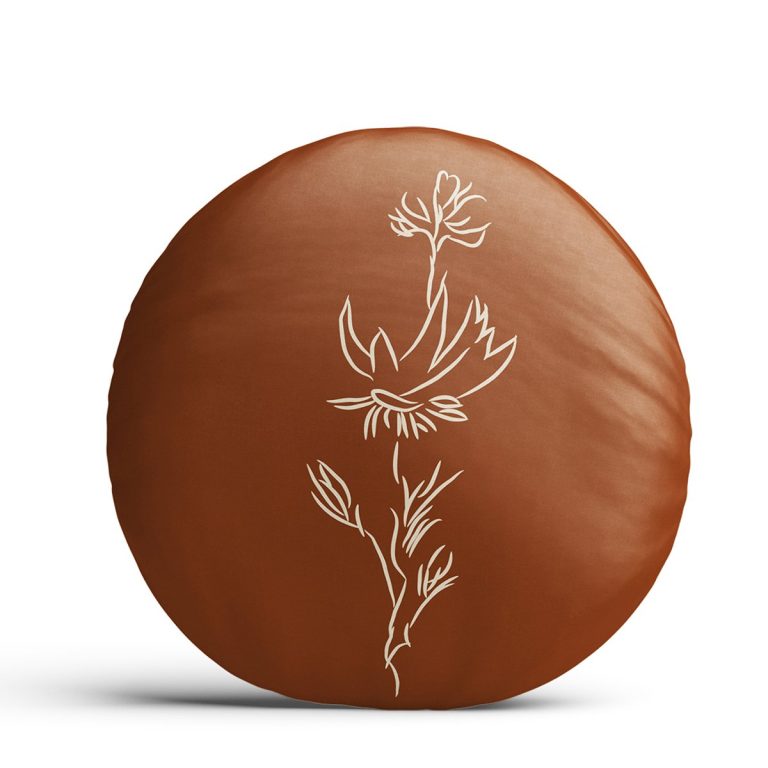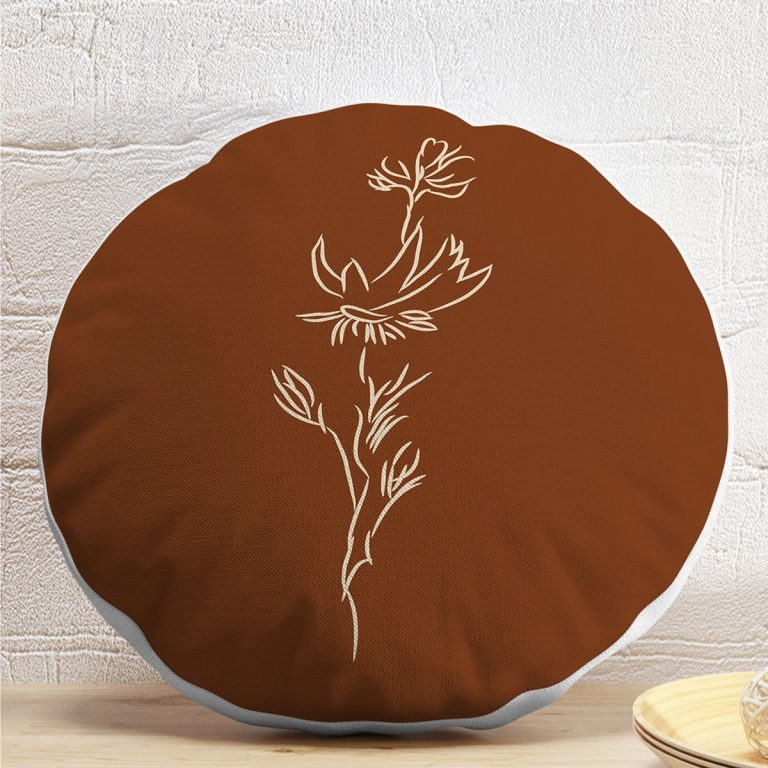Kahve Zemin Minimalist Çizimli Dijital Baskılı Modern Yuvarlak Yastık Kırlent Kılıfı