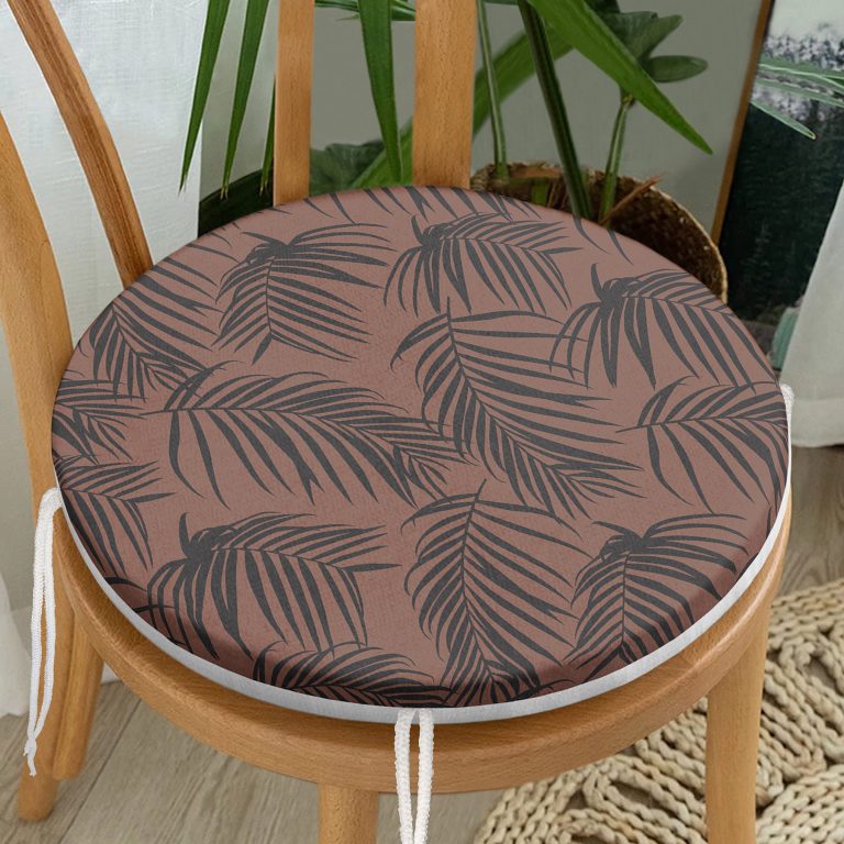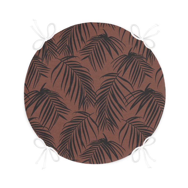 Kahve Zemin Siyah Tüy Tasarımlı Yuvarlak Fermuarlı Sandalye Minderi