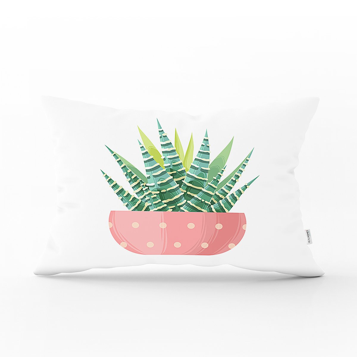 Kaktüs Özel Tasarımlı Dijital Baskılı Dekoratif Dikdörtgen Kırlent Kılıfı