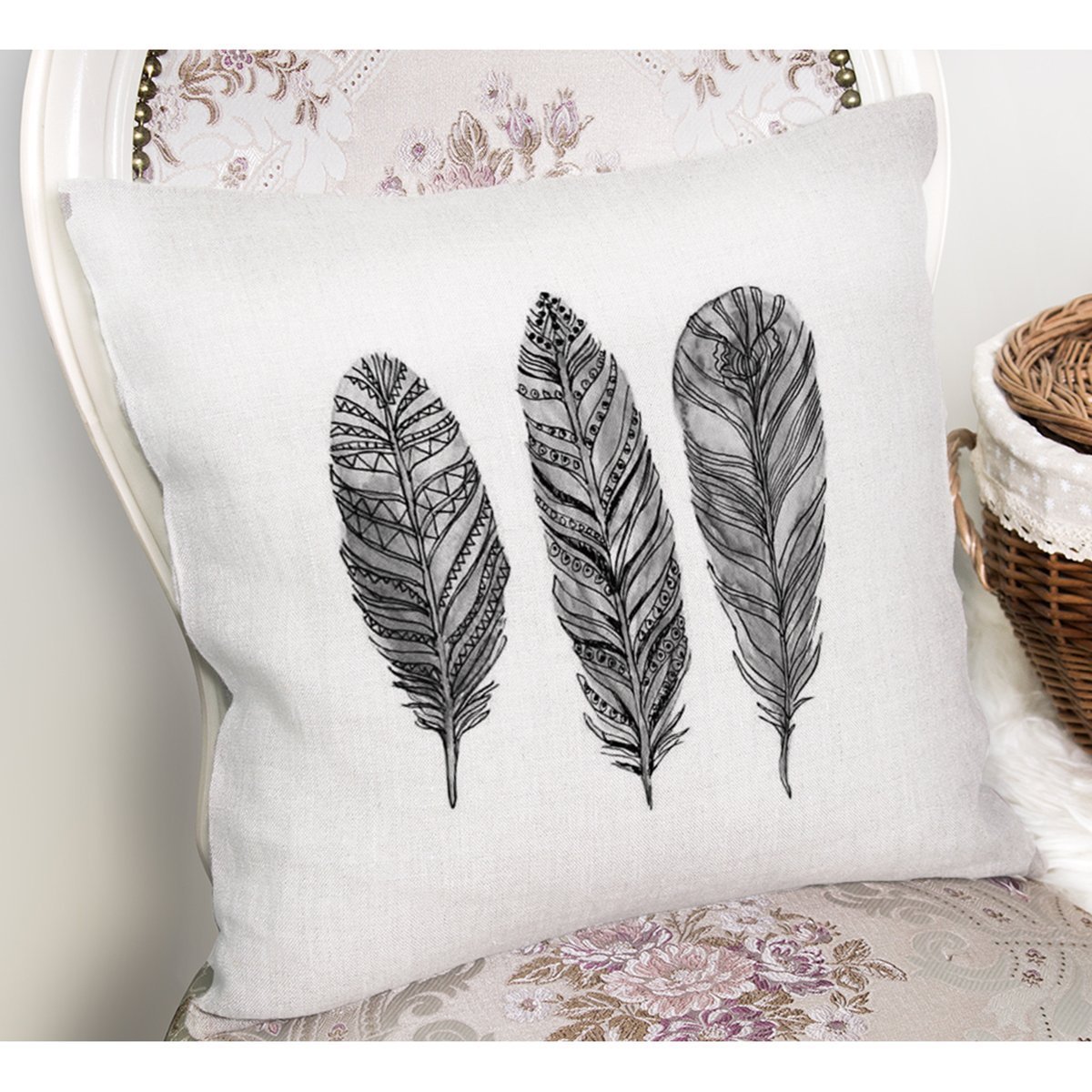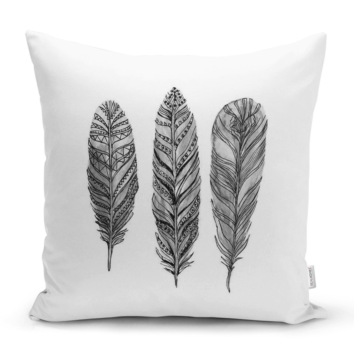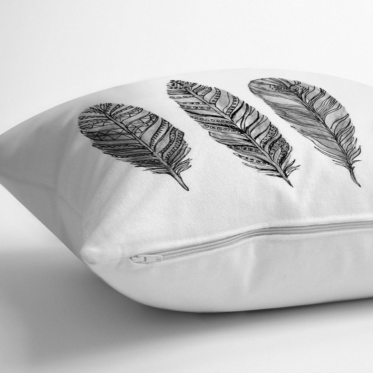 Karakalem Tüy Desenli Dikital Baskılı Modern Yastık Kırlent Kılıfı