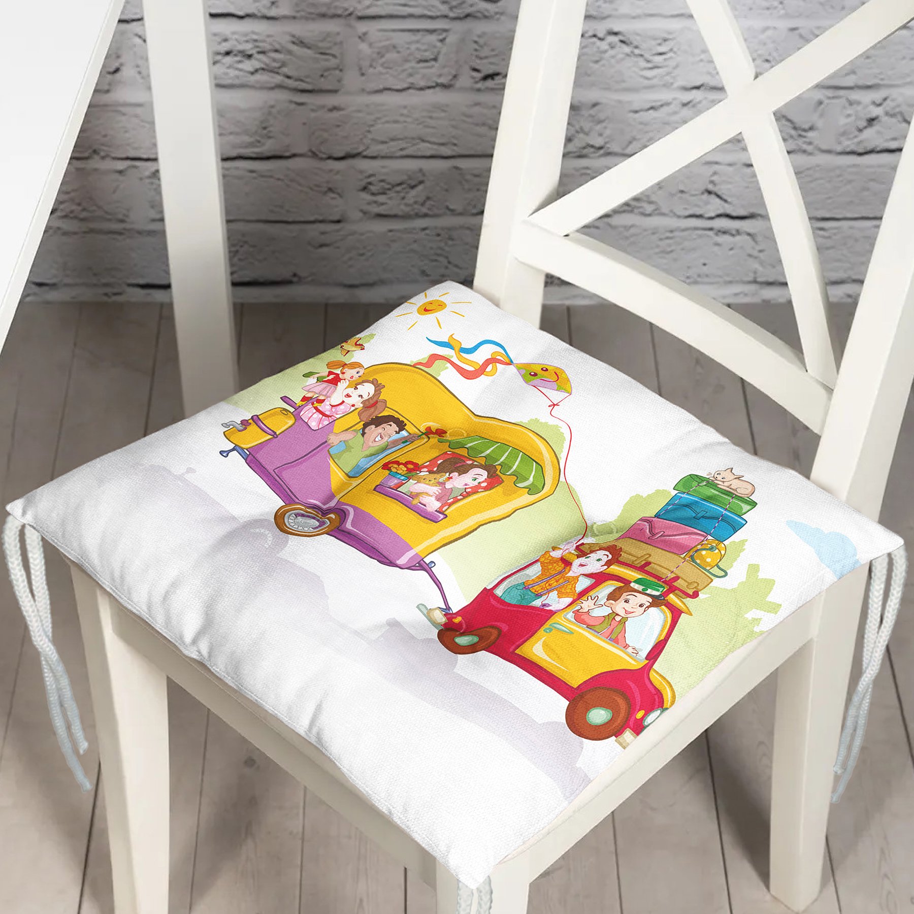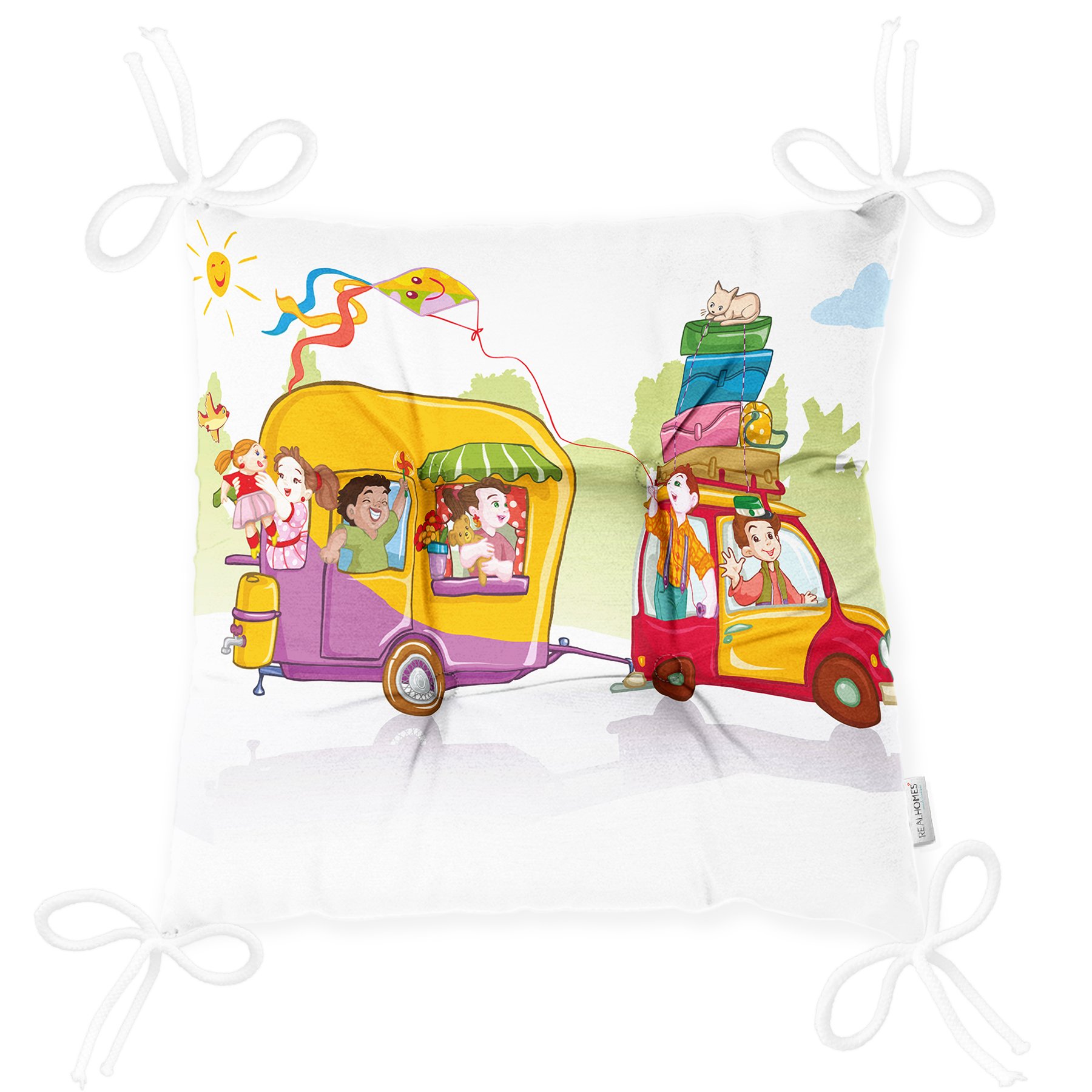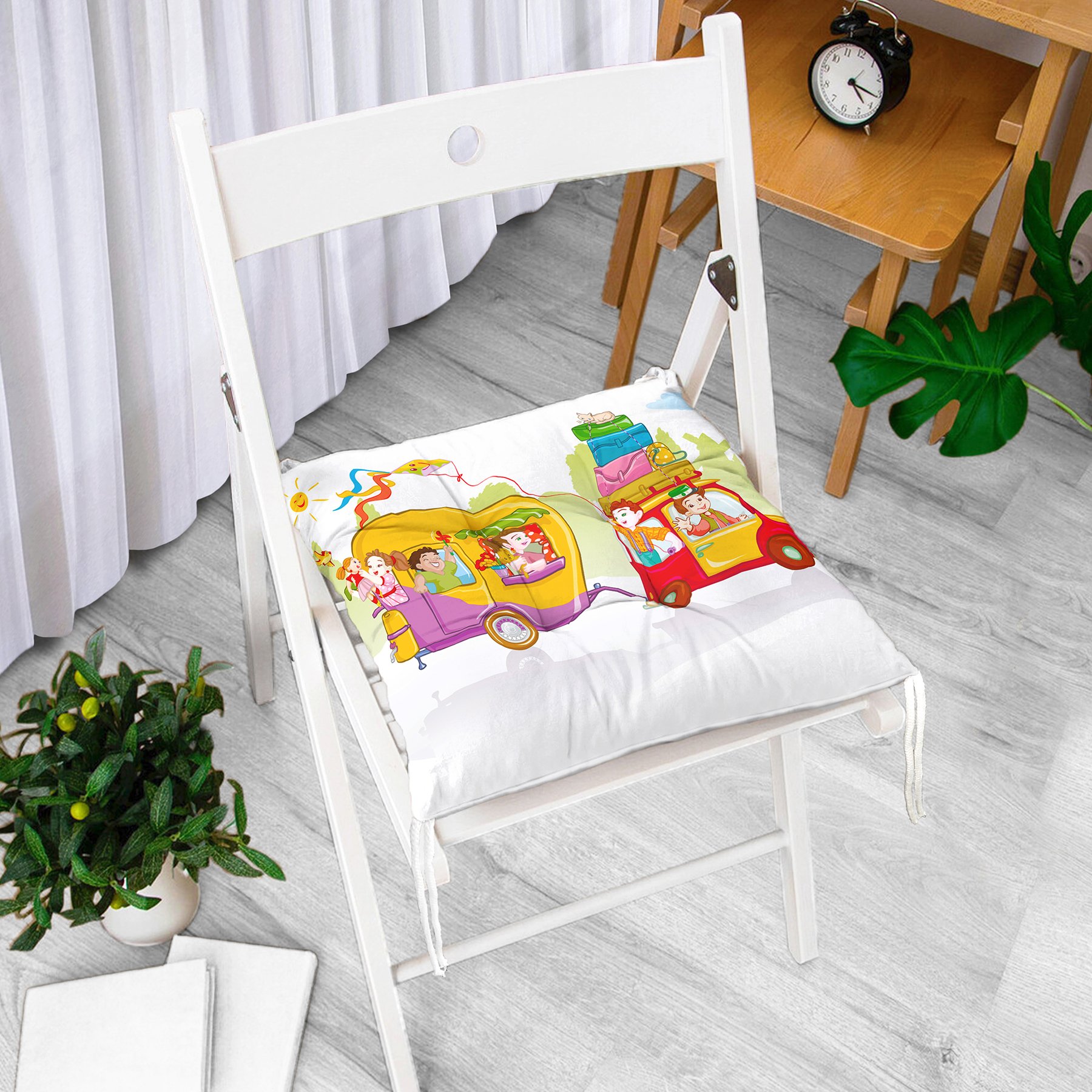 Karavanda Neşeli Aile Motifli Dijital Baskılı Modern Pofidik Sandalye Minderi