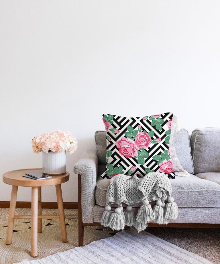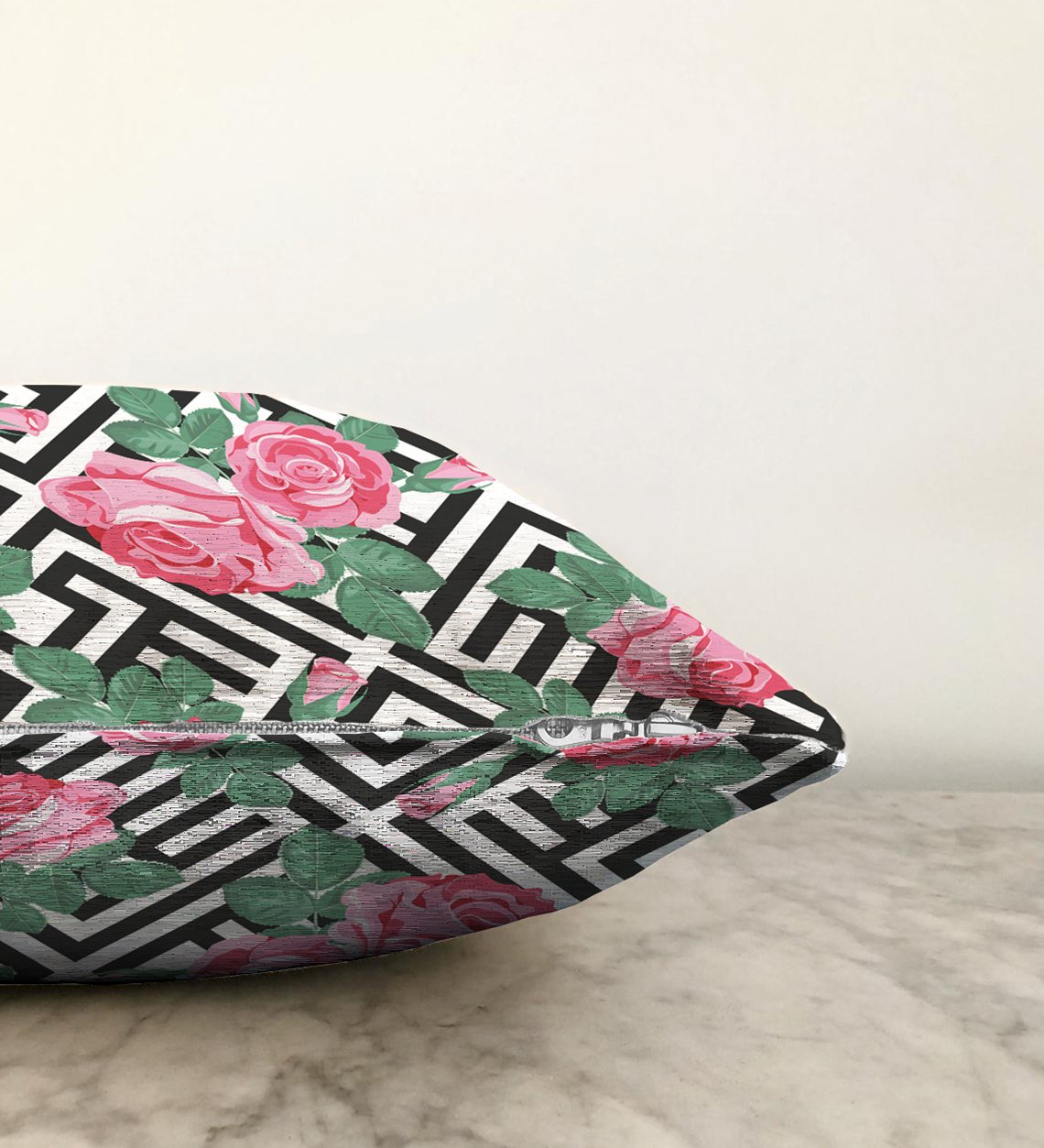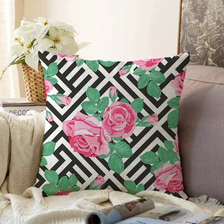 Karışık Desenli Gül Dijital Baskılı Dekoratif Raşel Kırlent Kılıfı